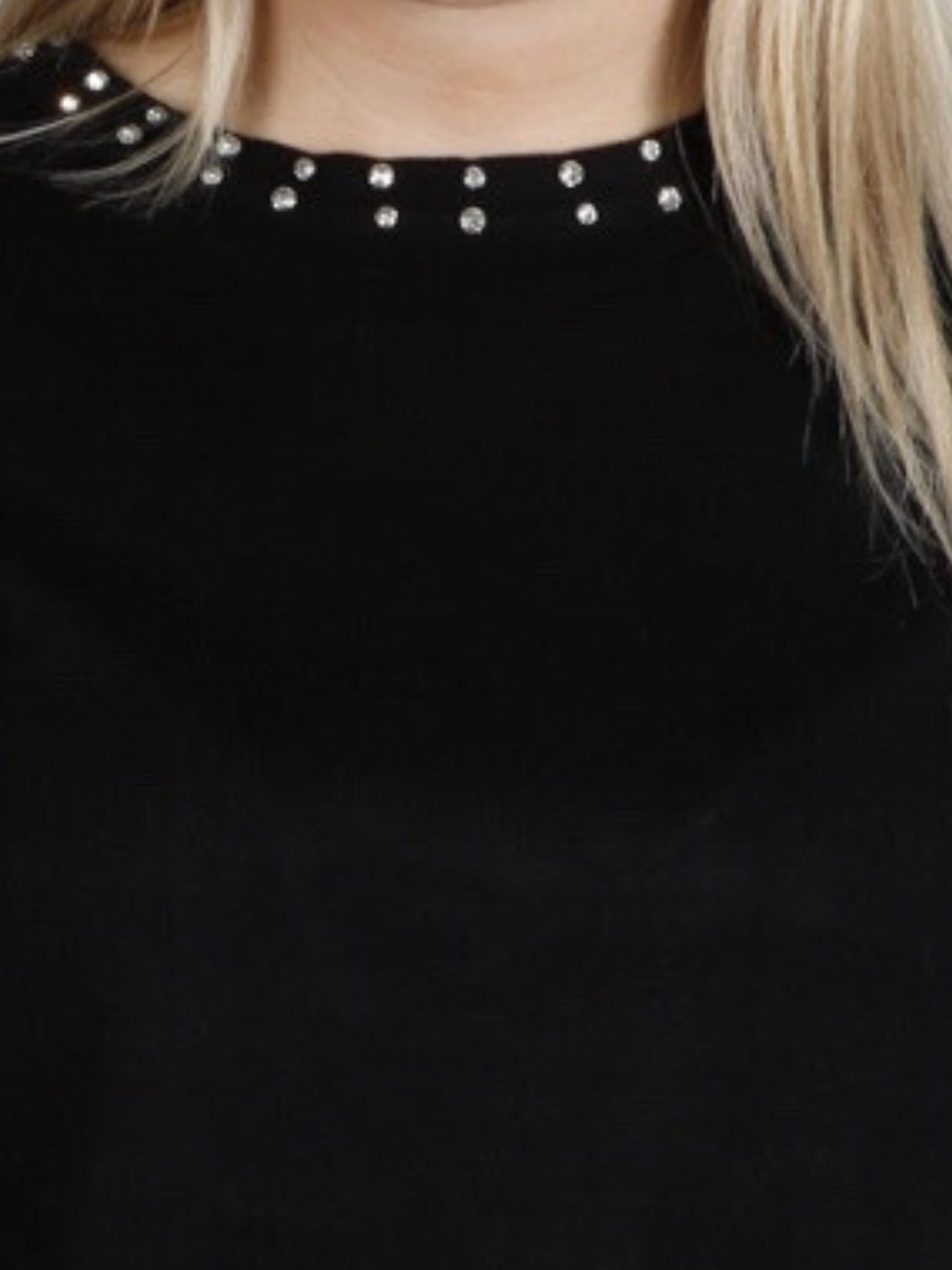 Diva Top fra Alma. En sort genser med korte ermer og rund hals detaljert med paljetter.