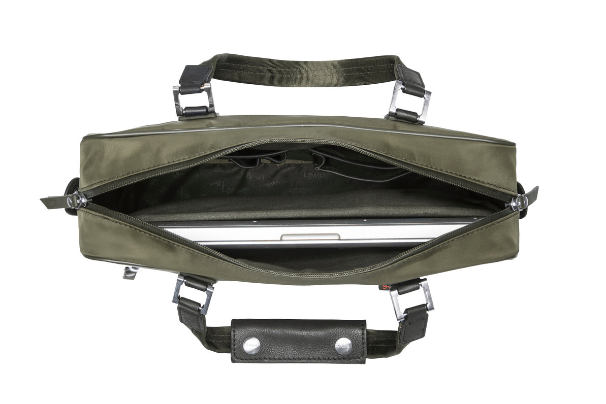 Attache PC-Bag fra SWIMS. Praktisk PC-bag i slitesterk nylon. Den har solid glidelås, polstret lomme til bærbar datamaskin og en avtakbar skulderrem.