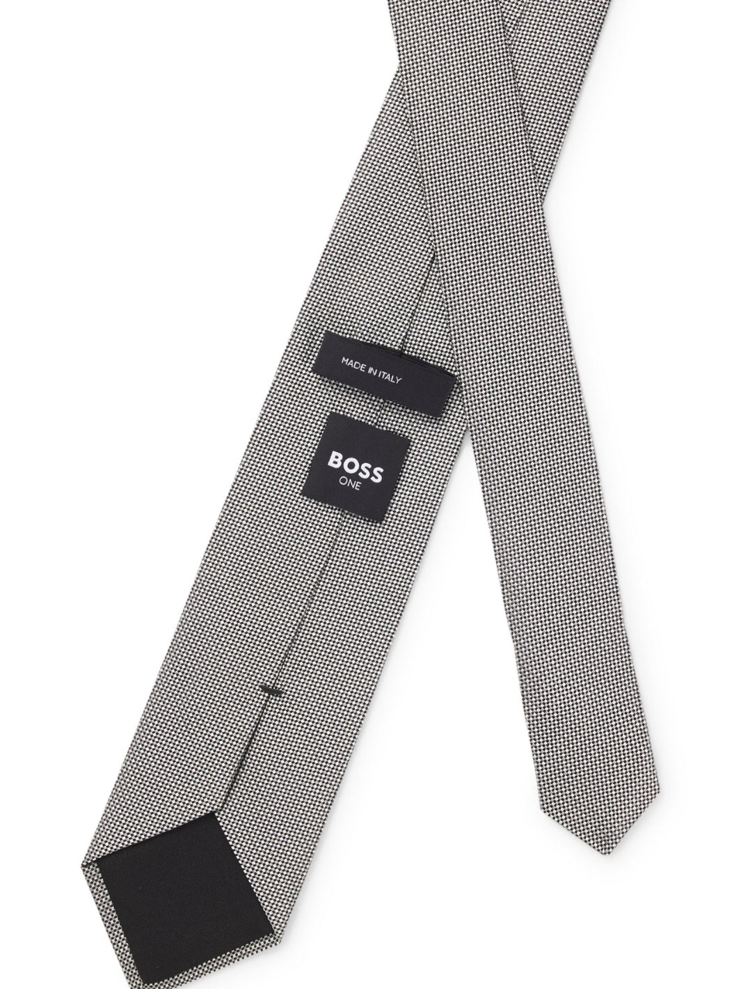 Silk Blend Tie fra BOSS. Et lillatonet slips med et diskret jacquardmønster, laget i silkeblanding.