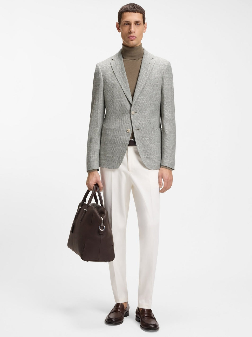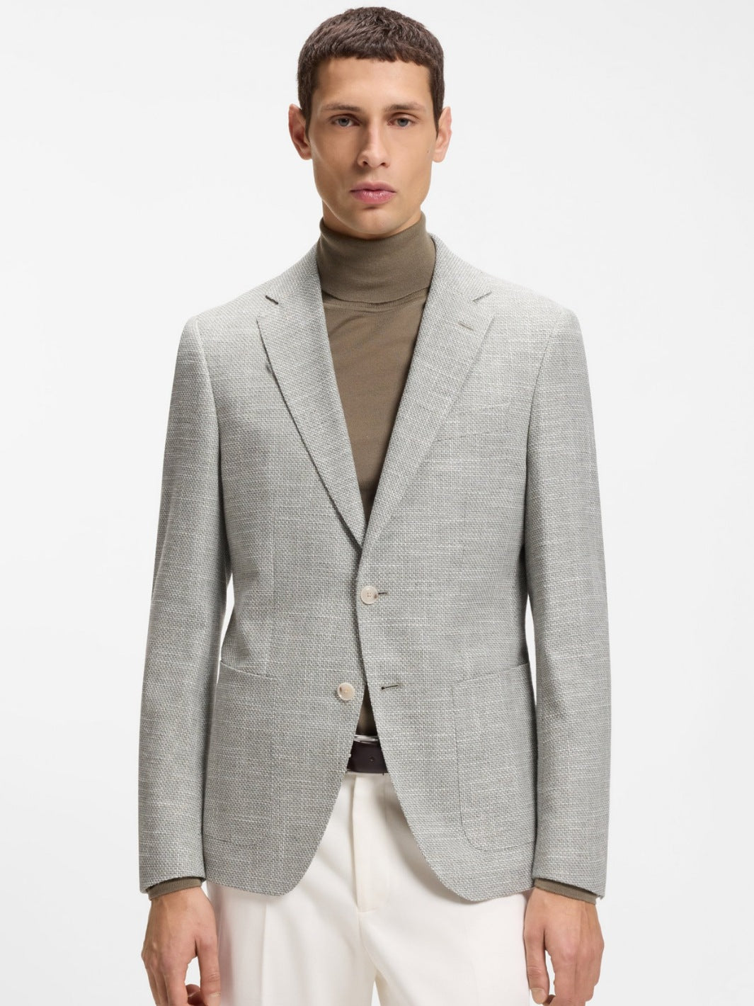 Regular-Fit Blazer fra BOSS. En lys grønn helfôret blazer med en regulær, rett passform. Dressjakken er laget i en linblanding med stretch.