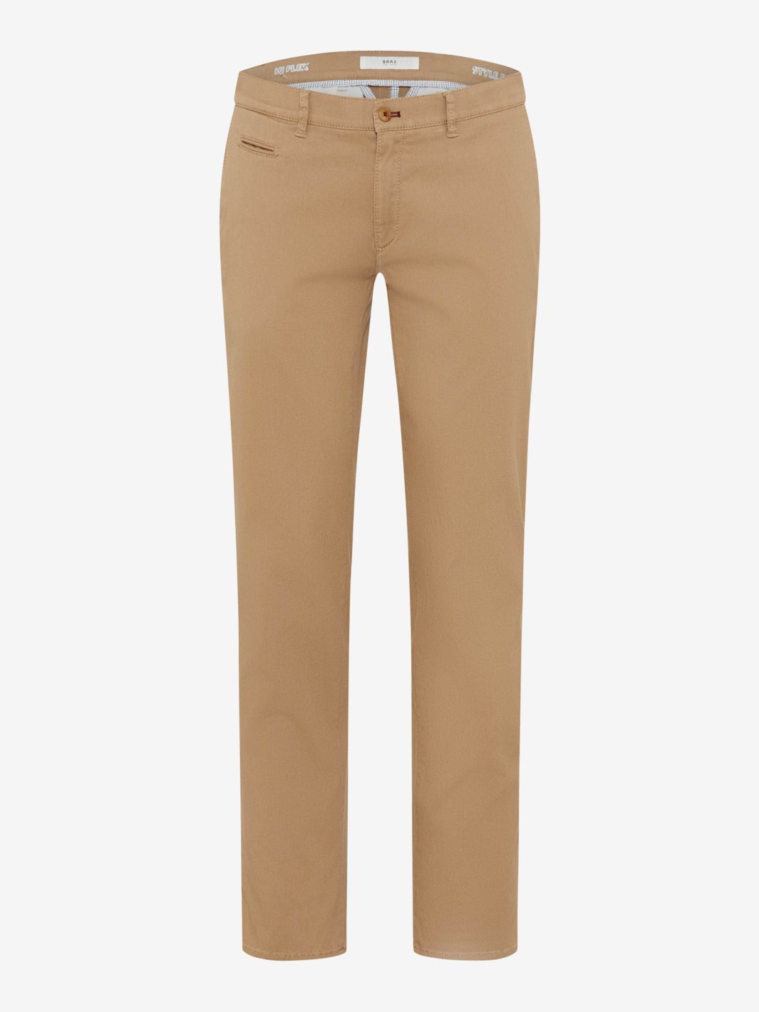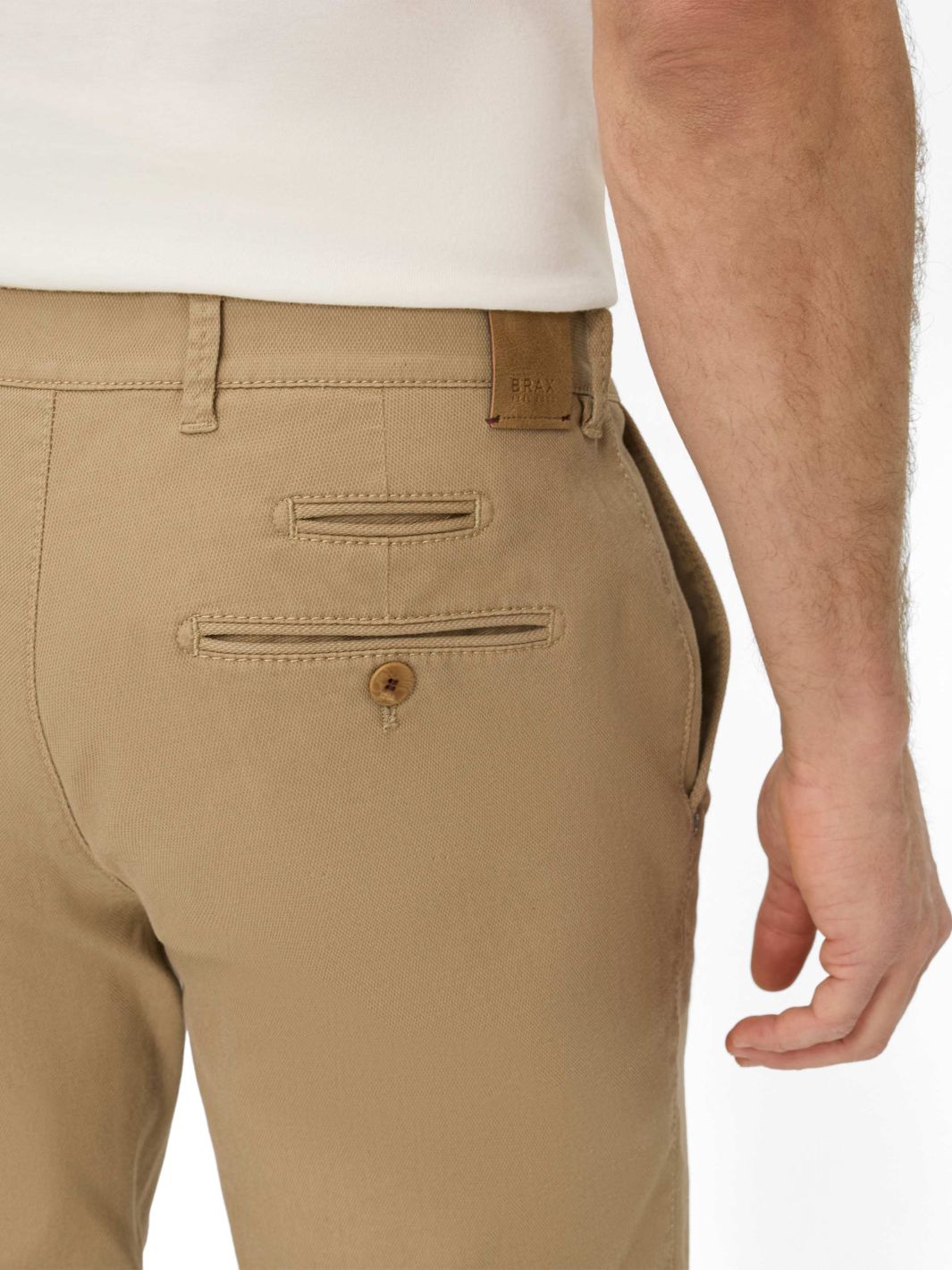 Fabio Chinos fra Brax. Klassiske chinos med en allsidig og behagelig passform, her i lys brun. Buksene er detaljert med passpoilerte lommer på baksiden.