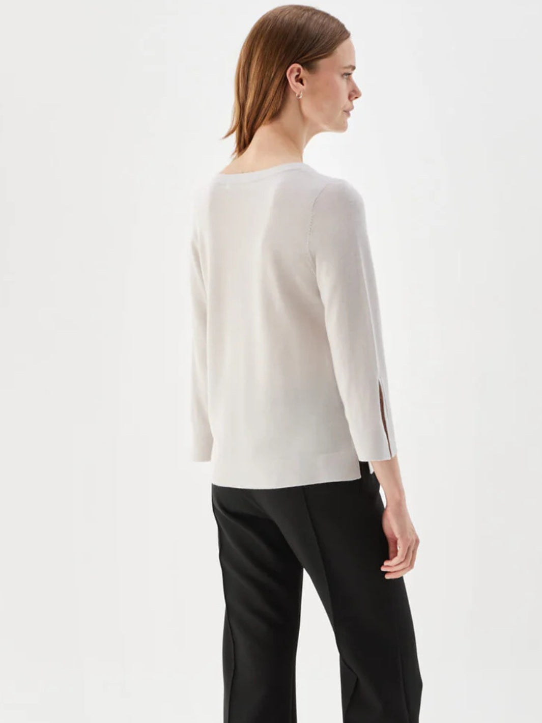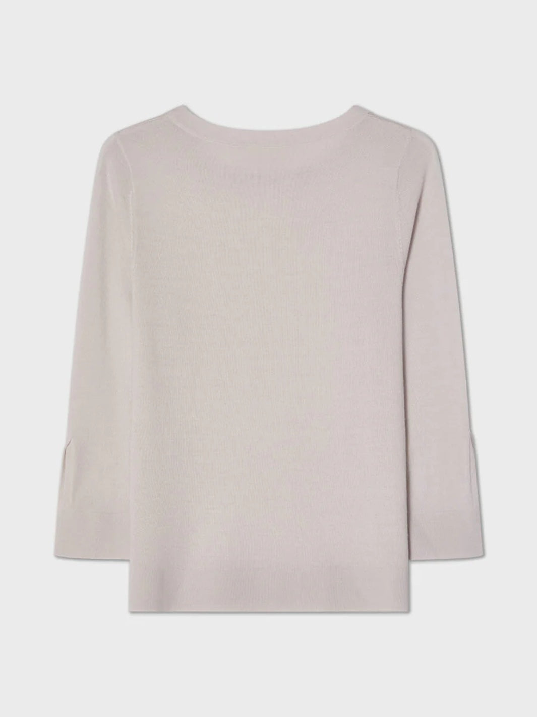 Ocean Top fra Busnel. En beige genser laget av merinoull. Genseren er detaljert med rund hals, og korte ermer med splitt.