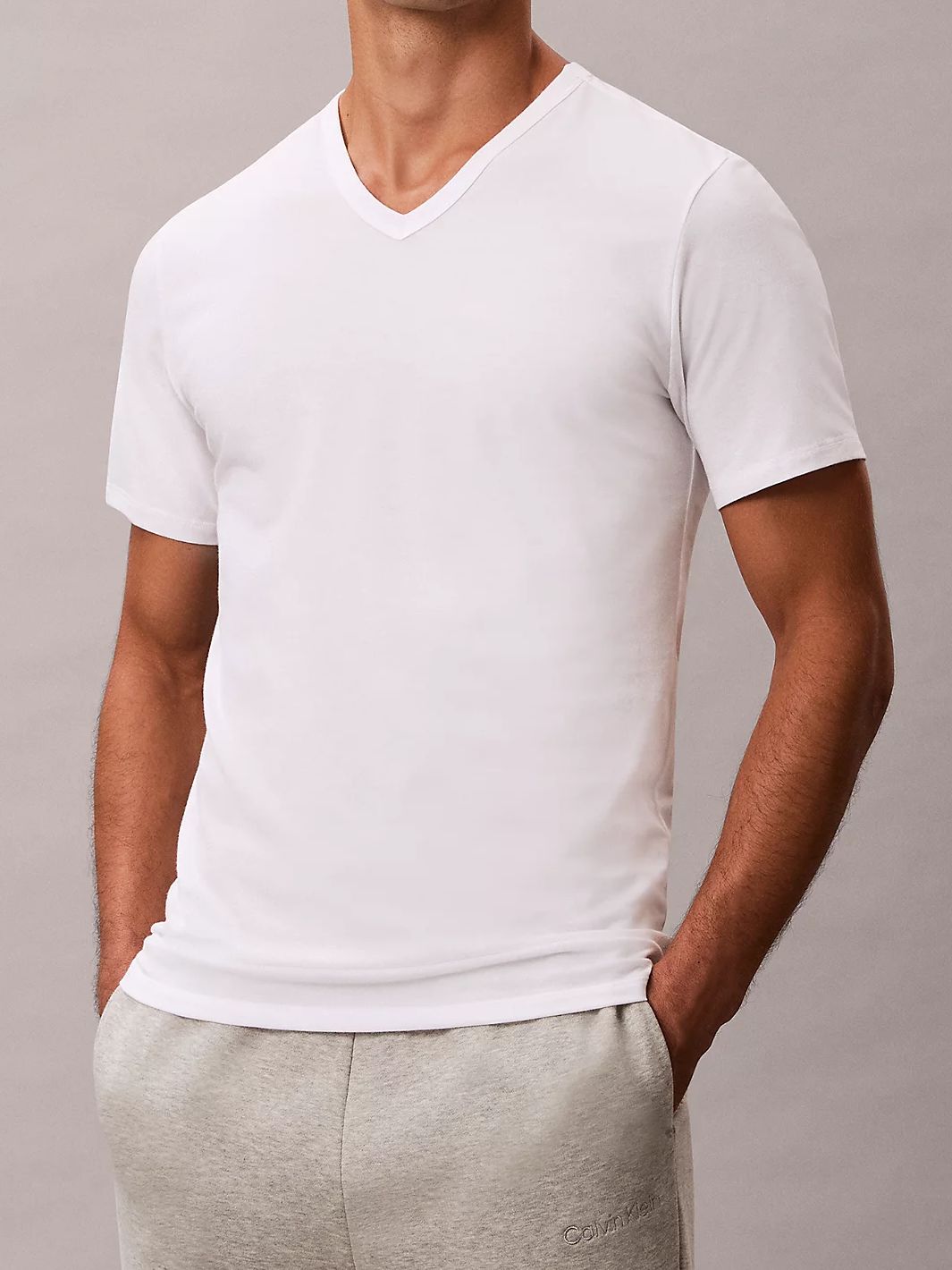 3 Pack T-skjorte med V-hals fra Calvin Klein. T-skjorter laget av en glatt og myk mikrofiber-bomullsjersey med stretch, her i hvit.