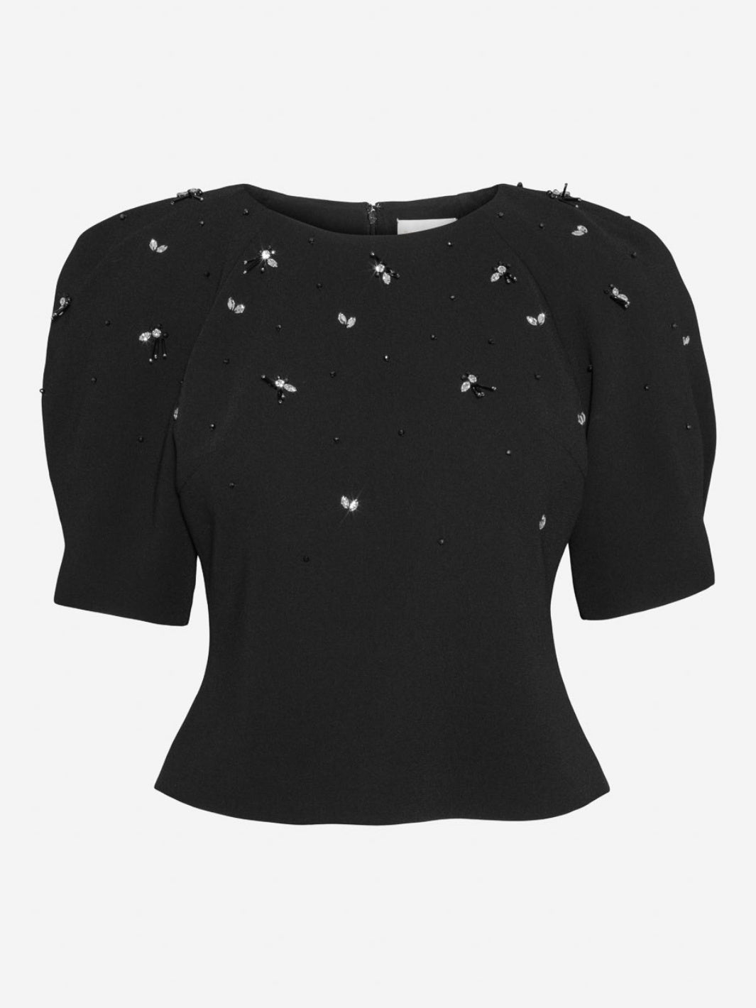 Lowa Top fra Camilla Pihl. En sort festlig topp, detaljert med paljetter, korte ermer og innsvinget midje.