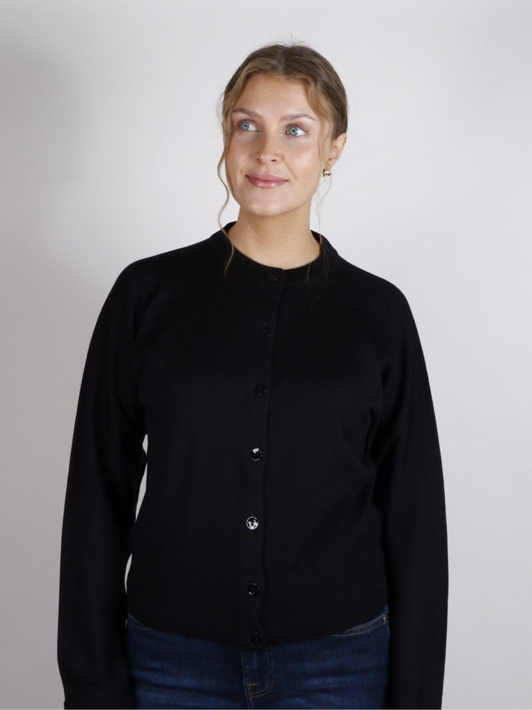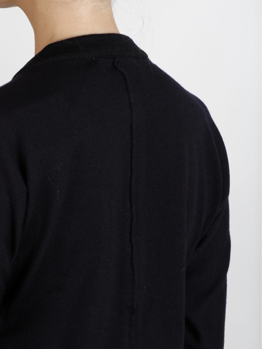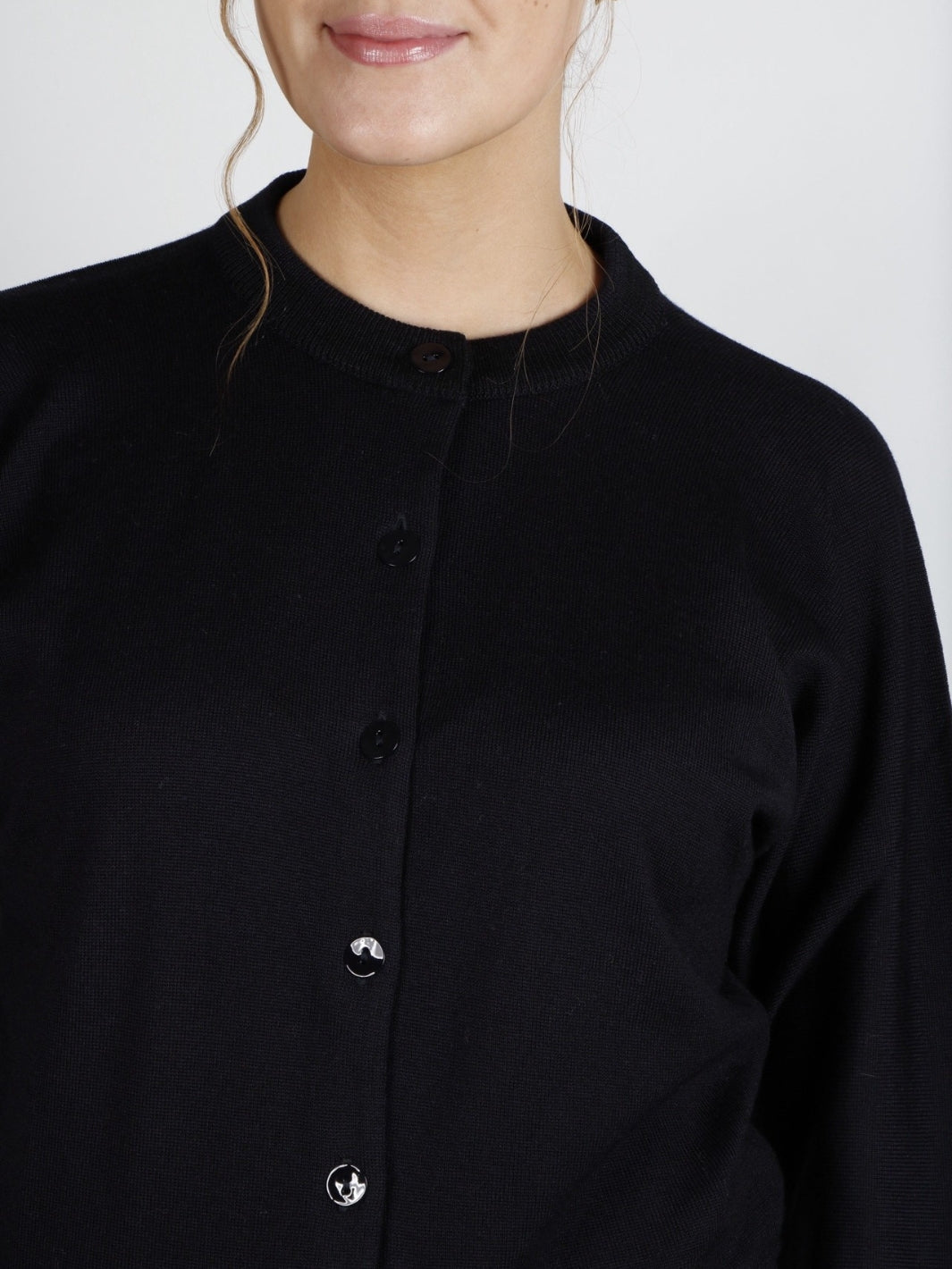 Merino Cardigan fra Daniele Fiesoli. Marineblå cardigan i myk merinoull. Cardigan har rund hals, ribbede kanter og en sømdetalj i ryggen.