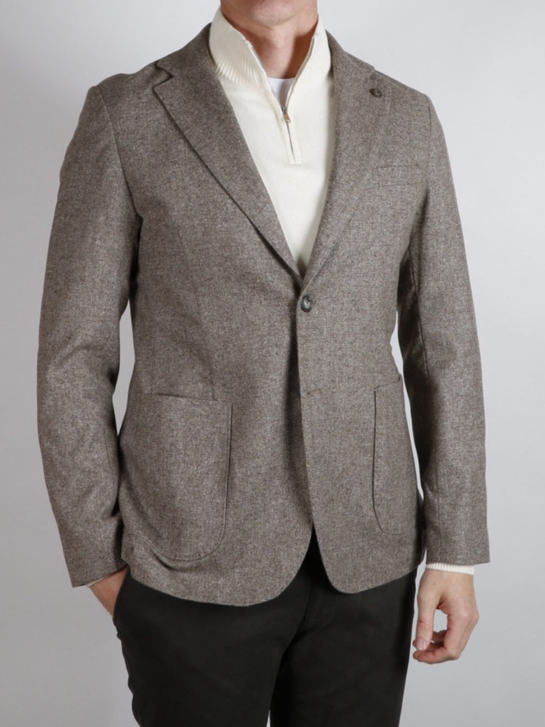 Wool Blend Blazer fra Asquani. En halvfôret dressjakke i ullblanding, detaljert med to større lommer foran.