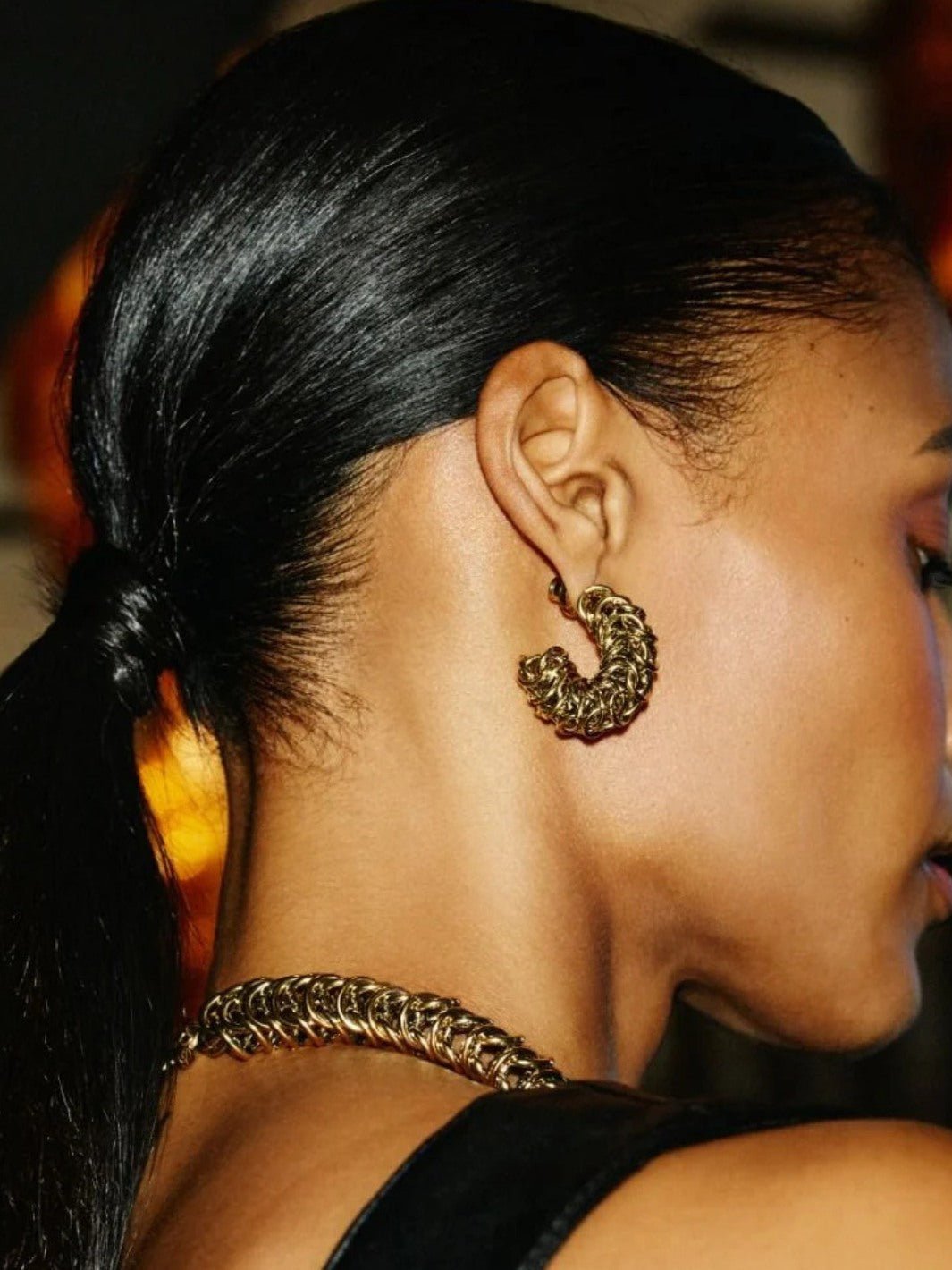 Palazzo Chain Hoops fra Edblad. Gullbelagte chunky øredobber som løfter festantrekket. Kombiner gjerne med halskjedet fra samme serie.