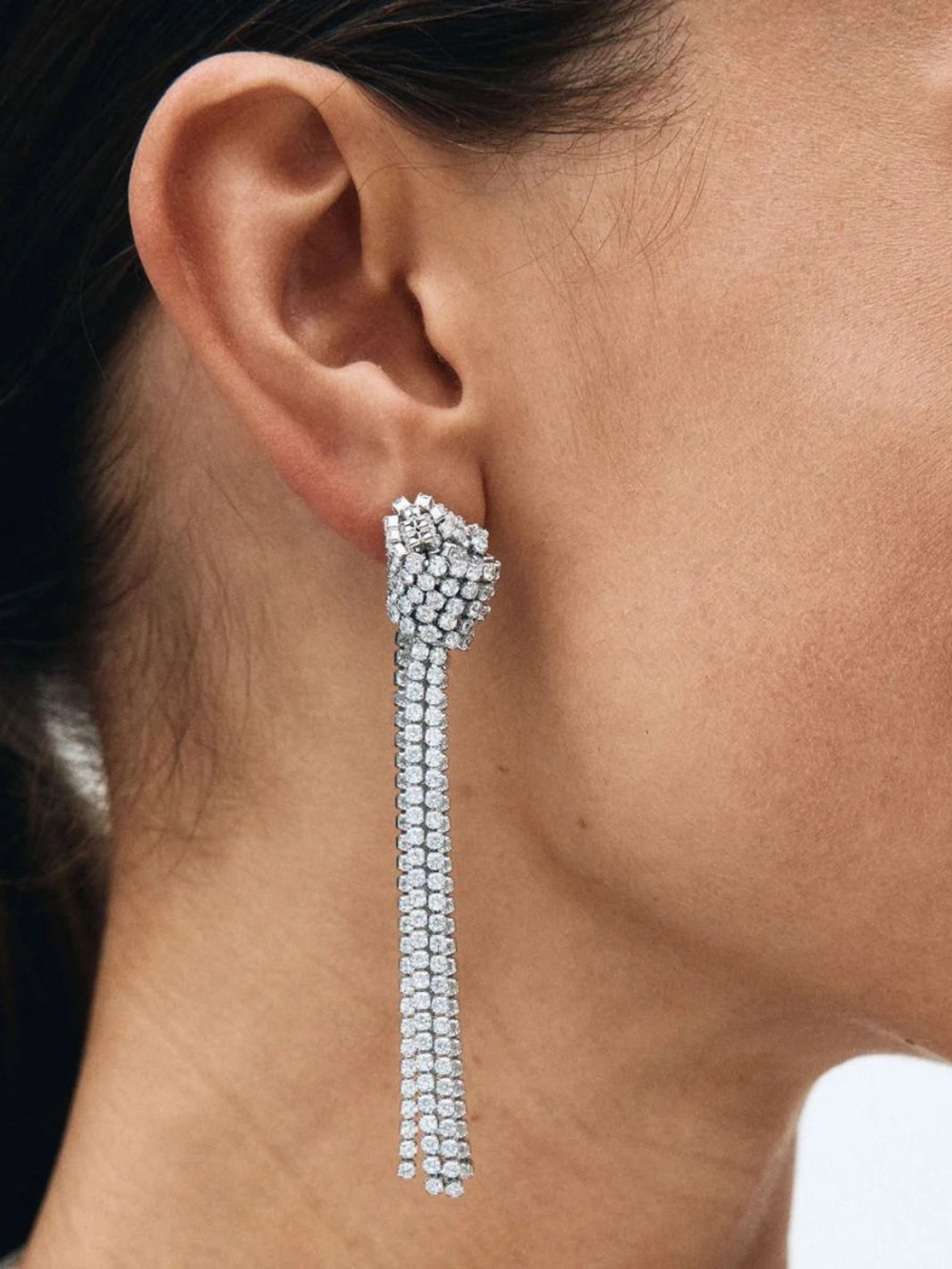 Revel Knot Earrings fra Edblad. Dramatiske sølvfargede øredobber med en knute øverst og glitrende steiner som henger nedover. Kombiner gjerne med smykket fra samme serie. Nikkelsikker.