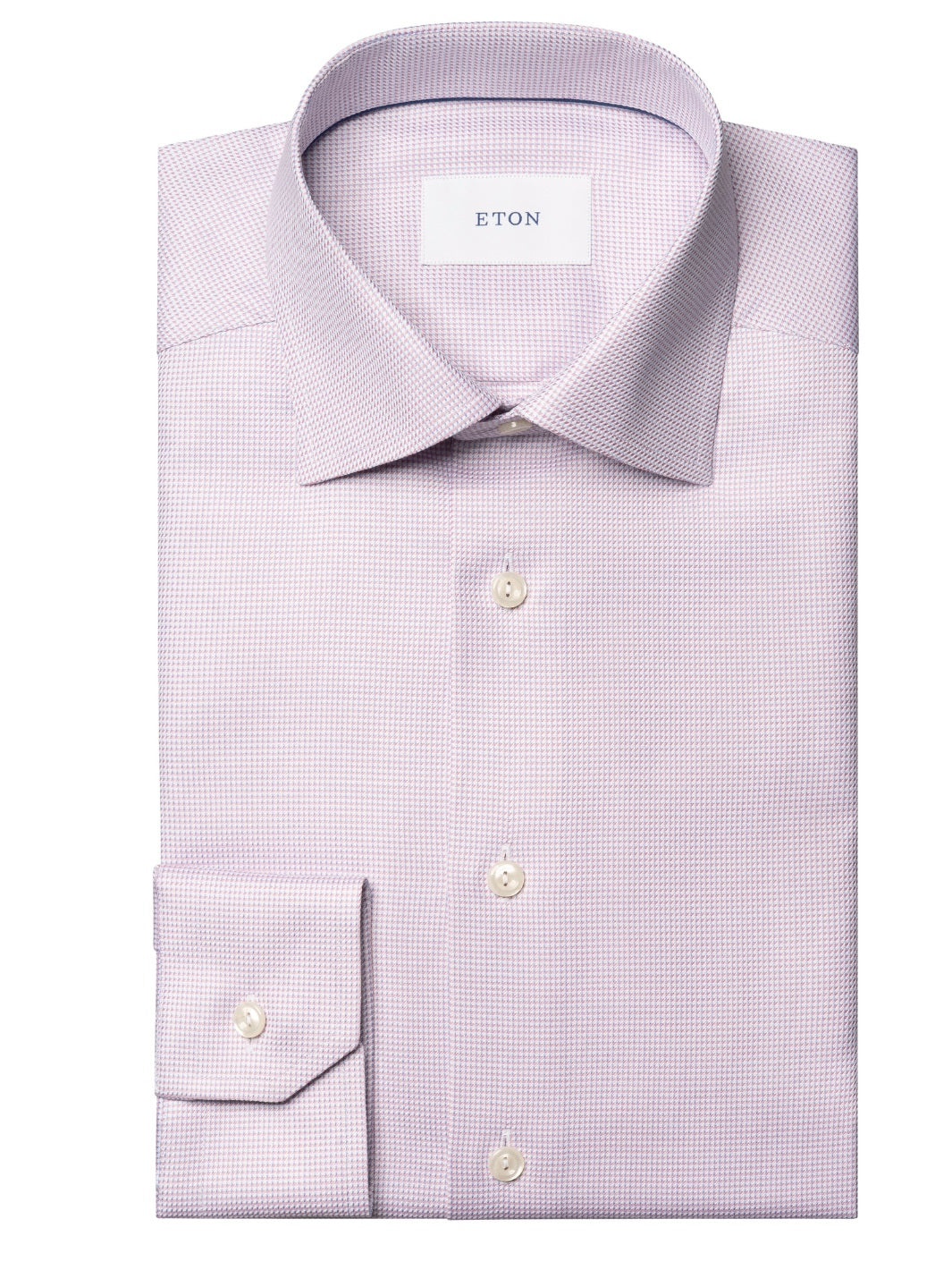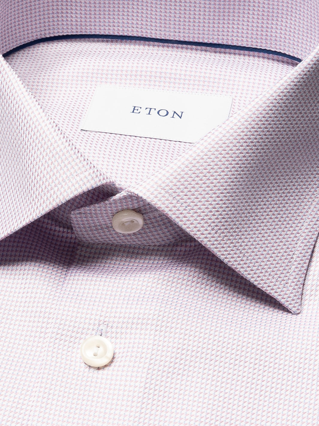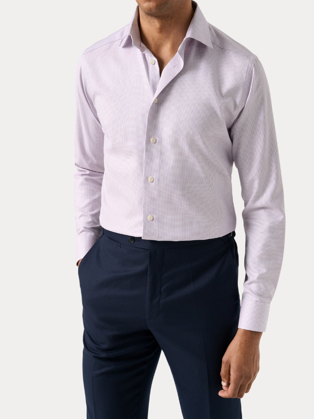 Slim Solid Twill Shirt fra Eton. En lys lilla slim-fit skjorte med cut-away krage og enkle mansjetter, detaljert med mikro fiskebensmønster.