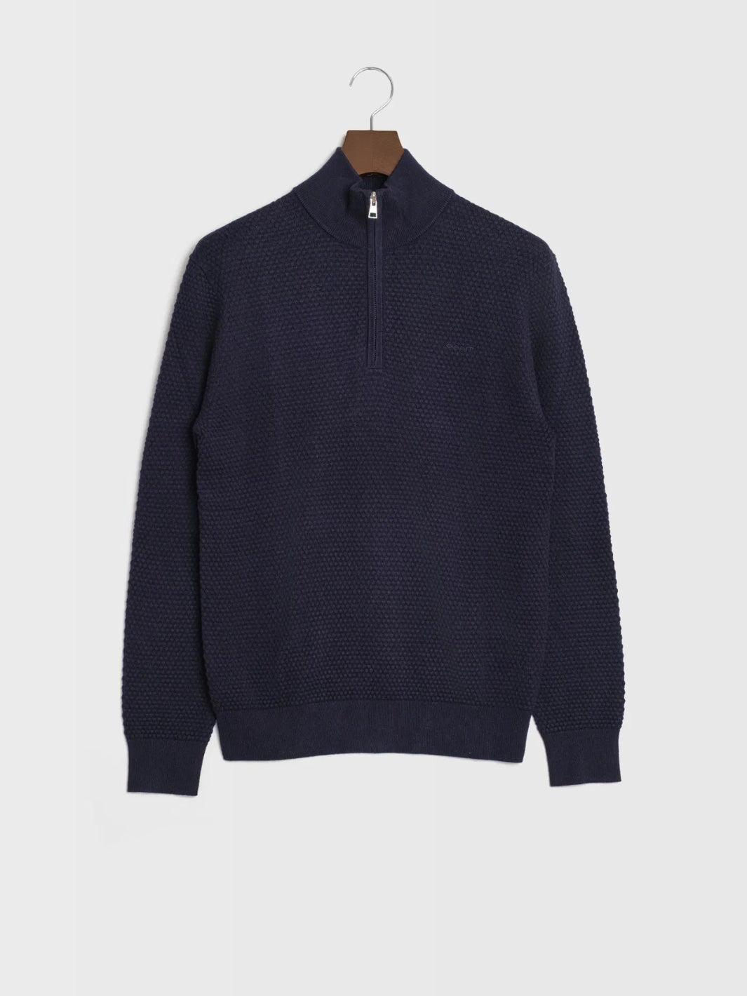 • GANT Textured Cotton Merino Half Zip Sweater Marine