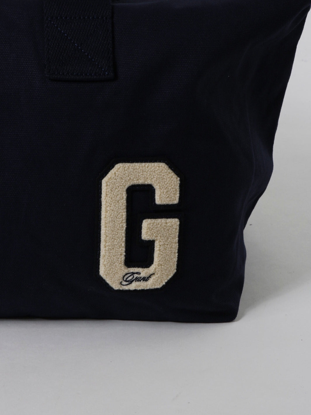 Canvas Duffel Bag fra GANT. Duffelbag laget i bomullscanvas med myk og avslappet silhuett. Designet med topp-håndtak, avtagbar og justerbar skulderstropp, innerlomme med glidelås og skinn-detaljer. Fronten er dekorert med Terry G-logo for et preppy og sporty uttrykk.