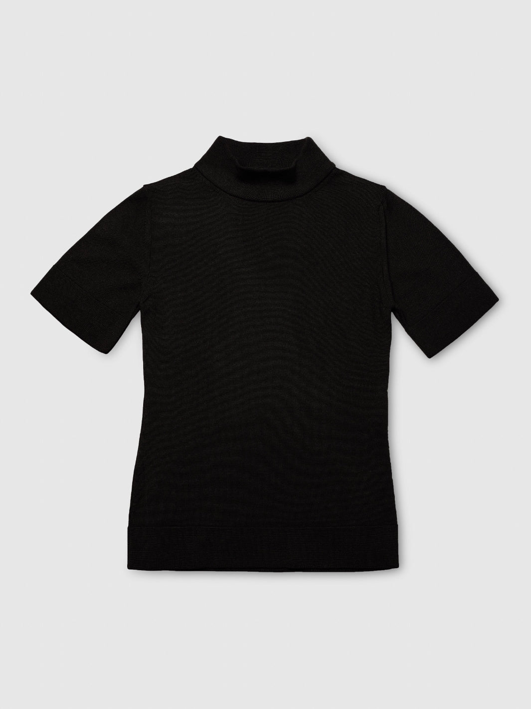 Merino Polo Short Sleeve fra The Product. En kortermet polo med korte ermer, her i sort. Laget i merinoull.