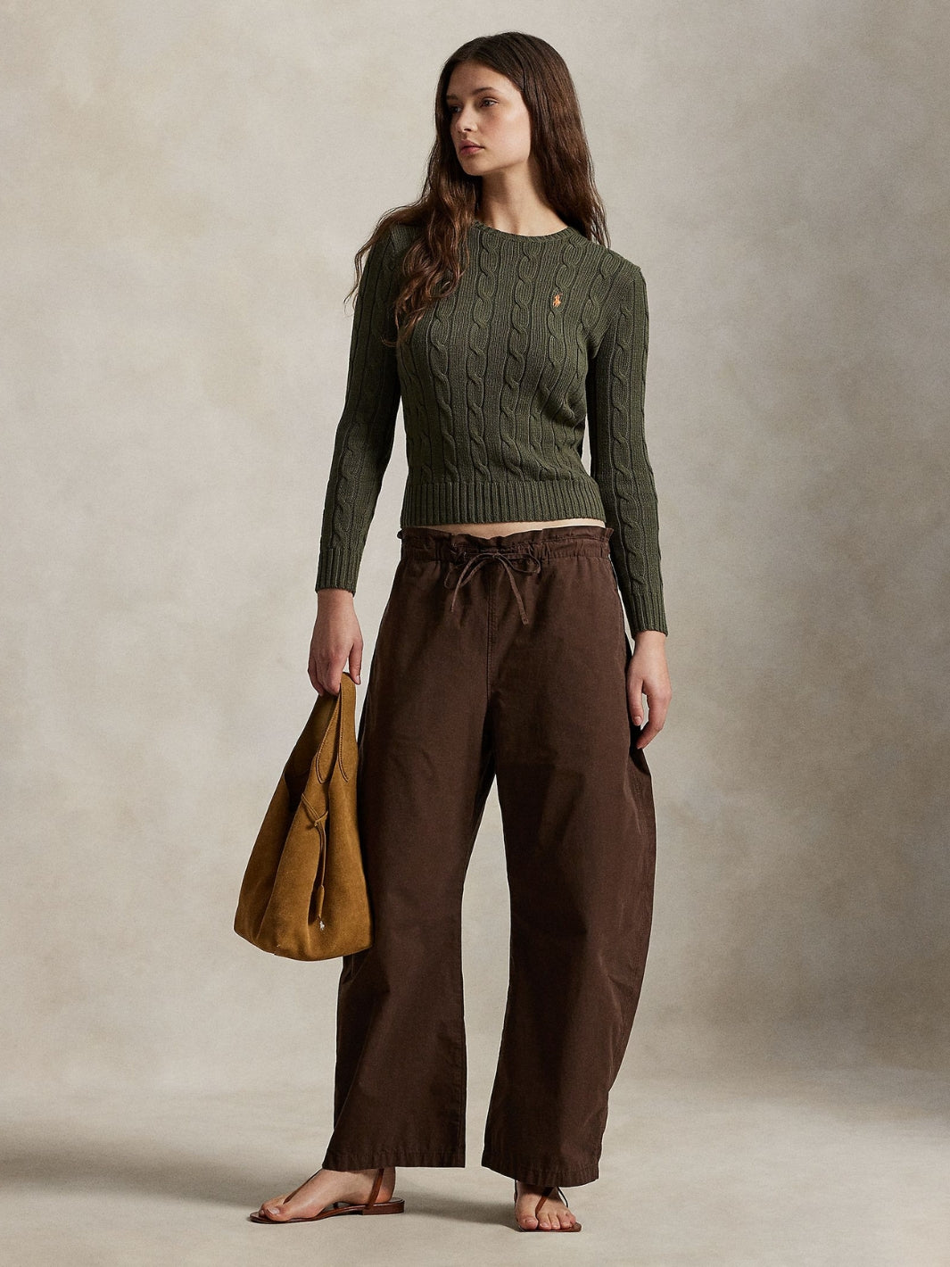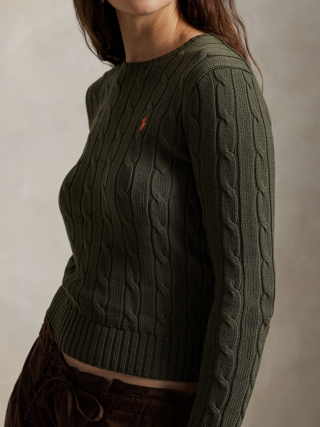 - Polo Ralph Lauren Cable-Knit Cotton Crewneck Sweater Harvest Olive