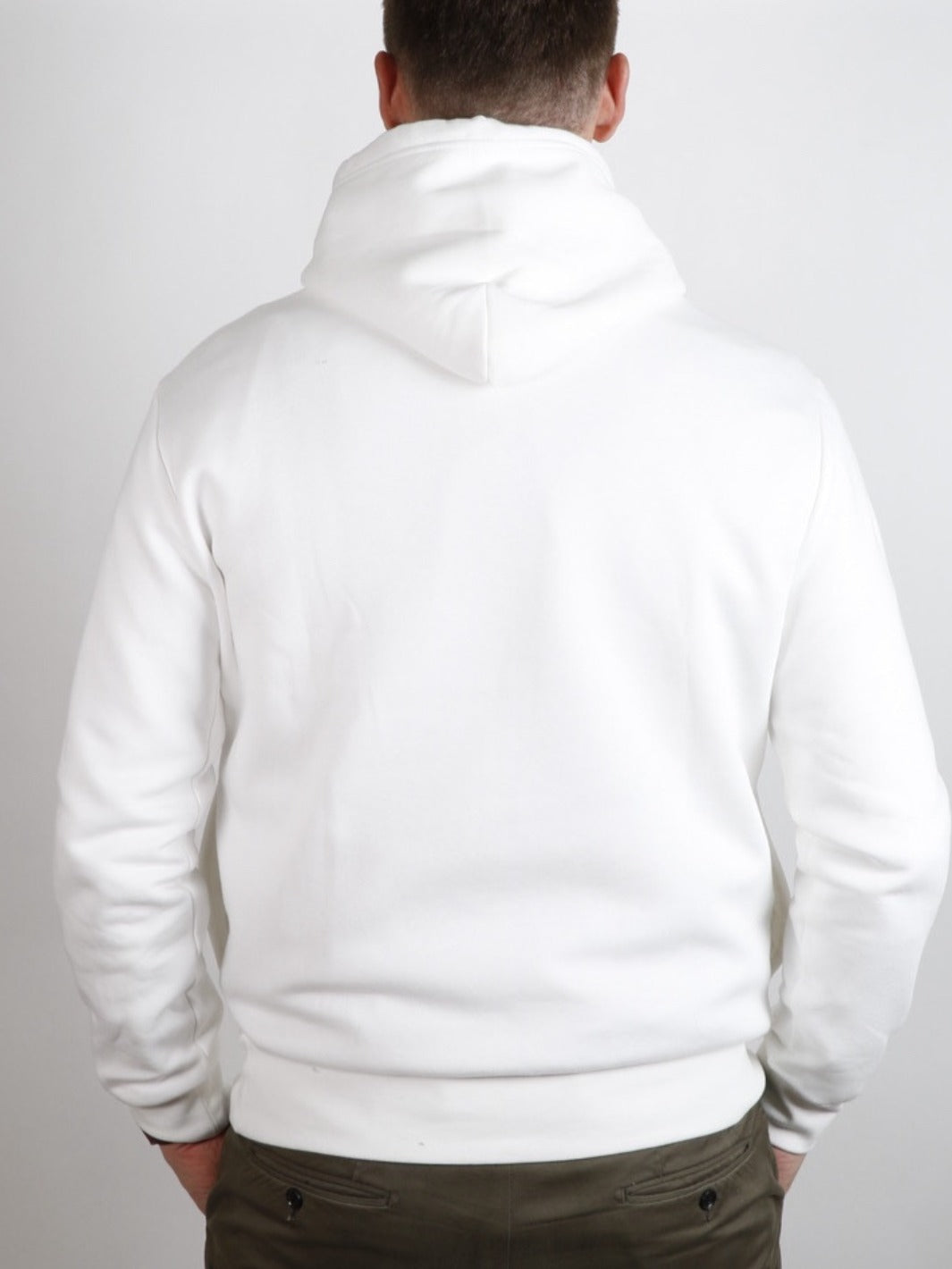 Fleece Graphic Hoodie fra Polo Ralph Lauren. En hvit hettegenser med “Polo Ralph Lauren”-emblem fra 1986 detaljert med laurbærkrans rundt. Genseren har justerbar snøring i hetten.
