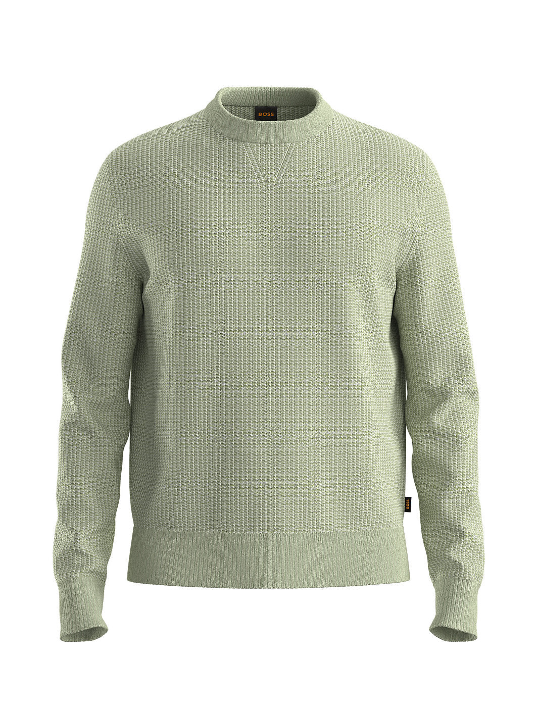 Cotton-Blend Sweater fra BOSS. Klassisk genser med rund hals og subtil V-detalj ved halsutringningen. Strikket i en bomullsrik 3D-struktur som gir en lett og komfortabel følelse. Modellen har ribbede mansjetter og standard lengde.