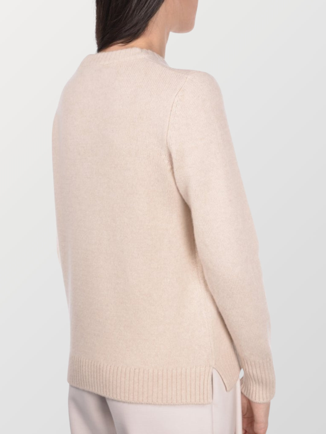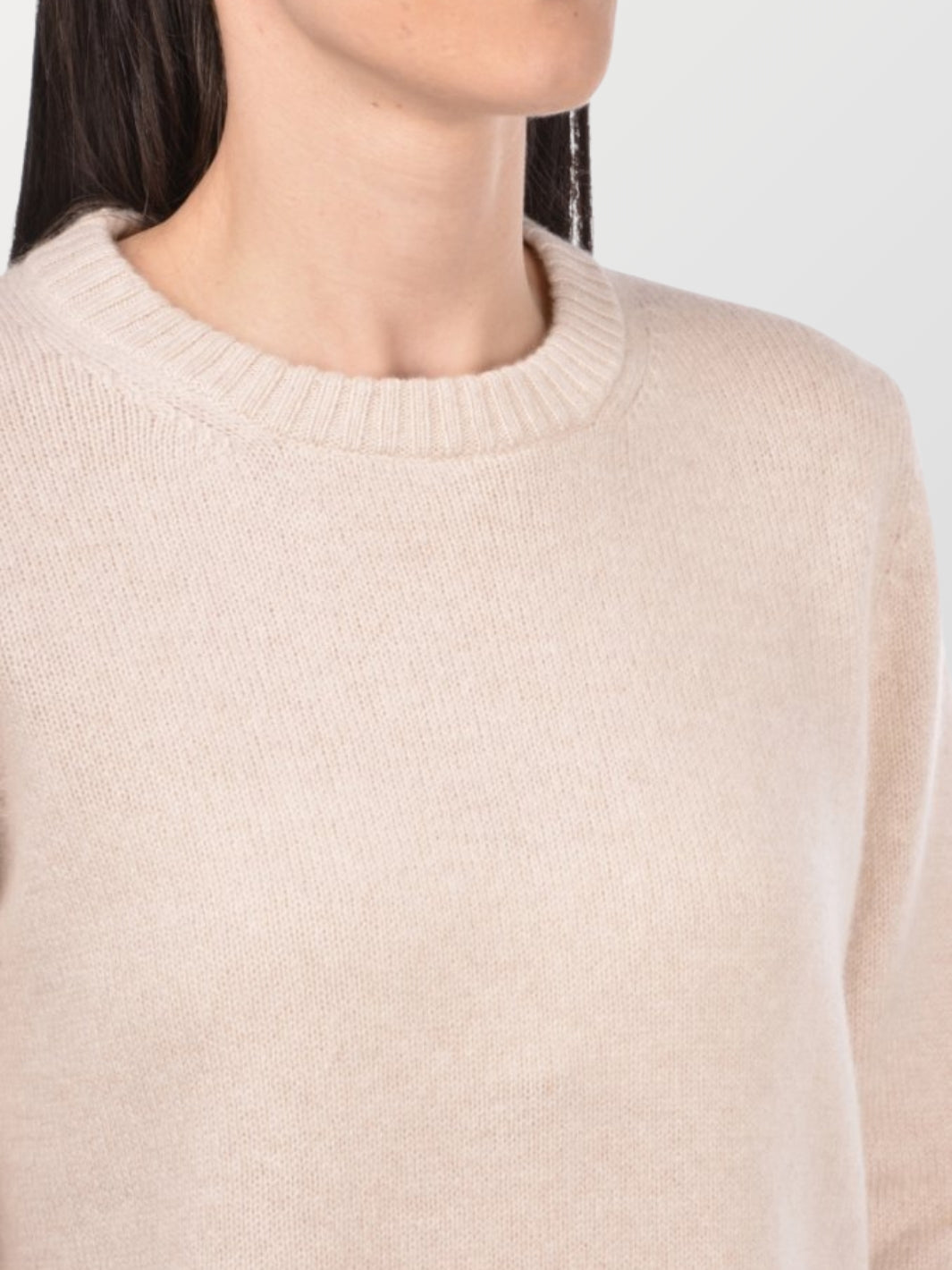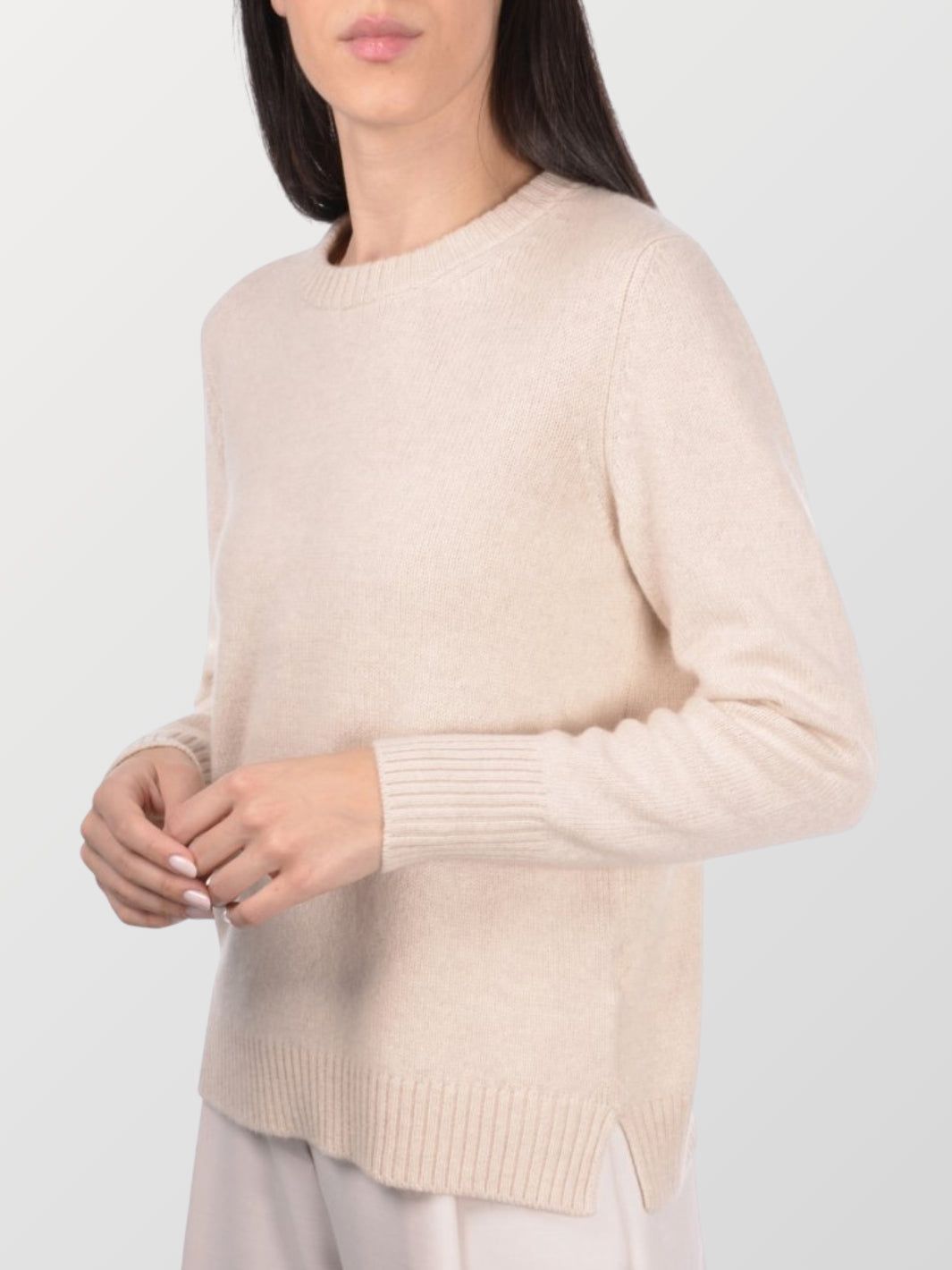 Crew Neck Sweater fra Gran Sasso. En beige genser med rund hals og ribbestrikkede detaljer. Laget i myk og behagelig kashmir.