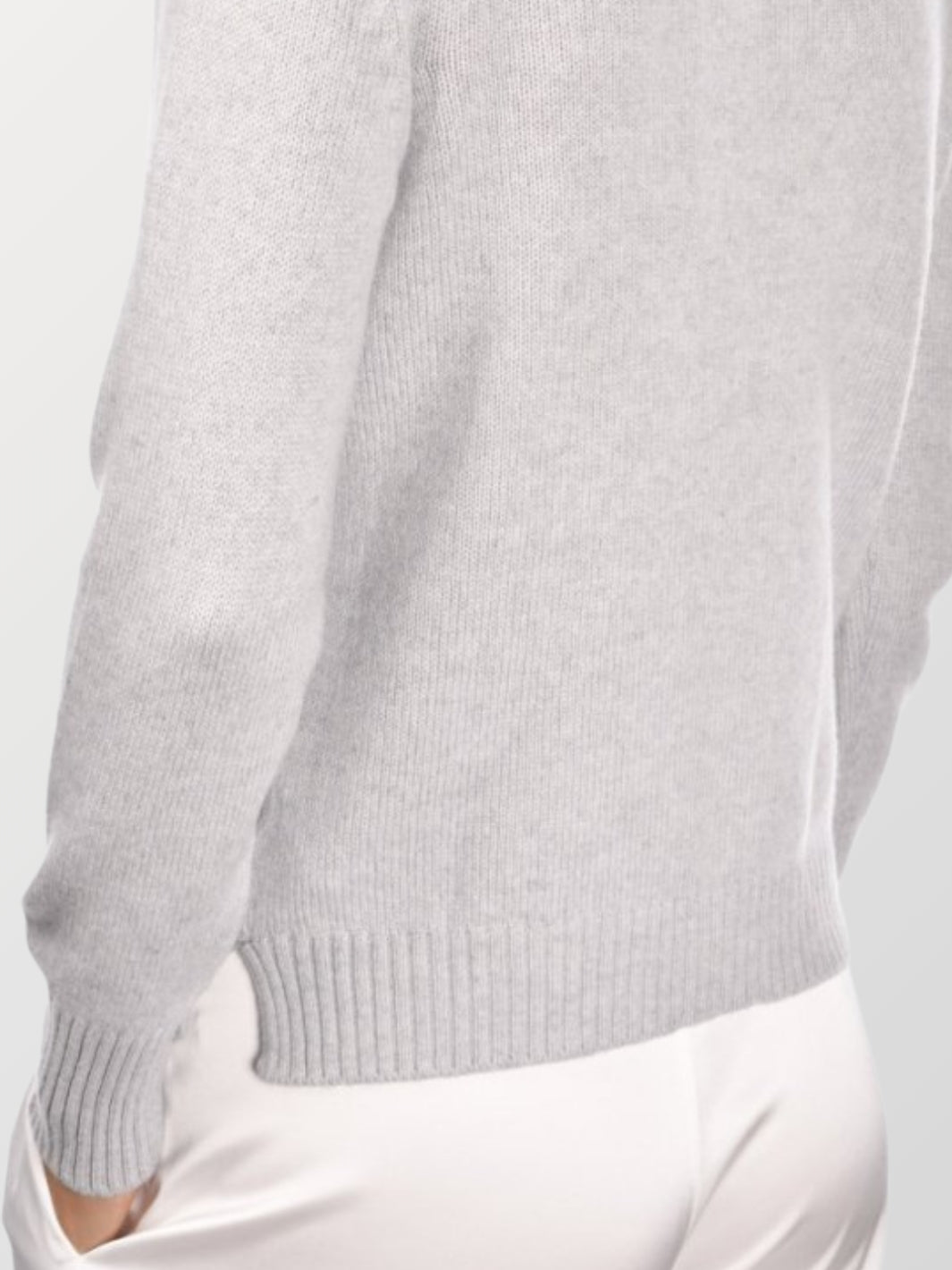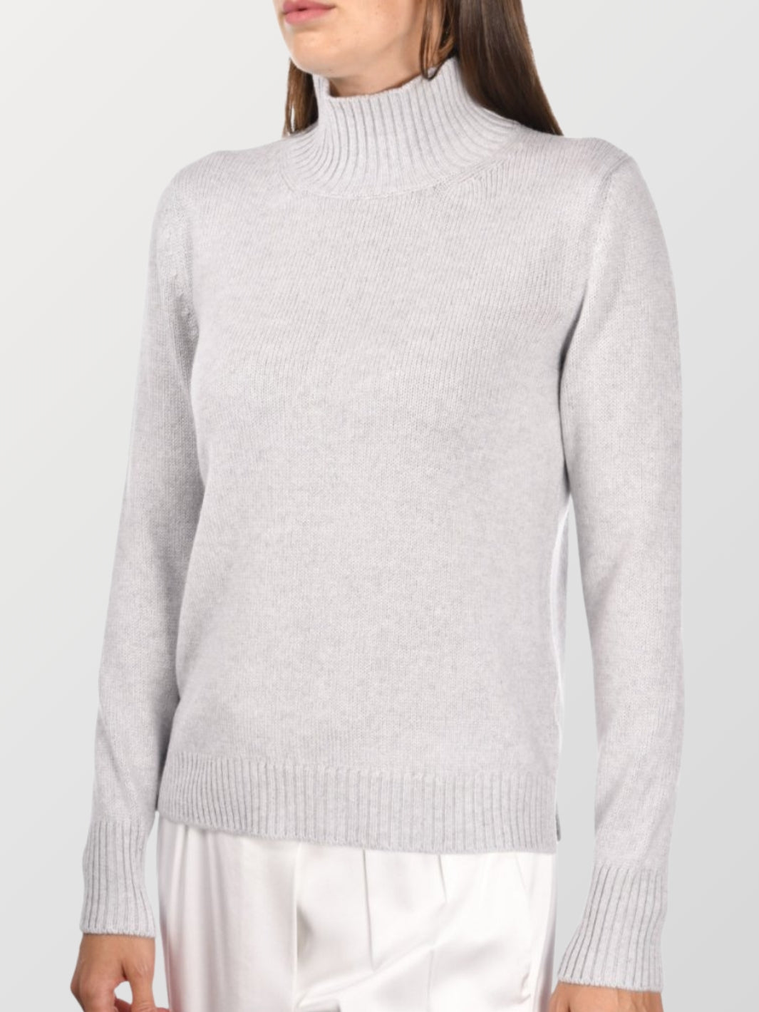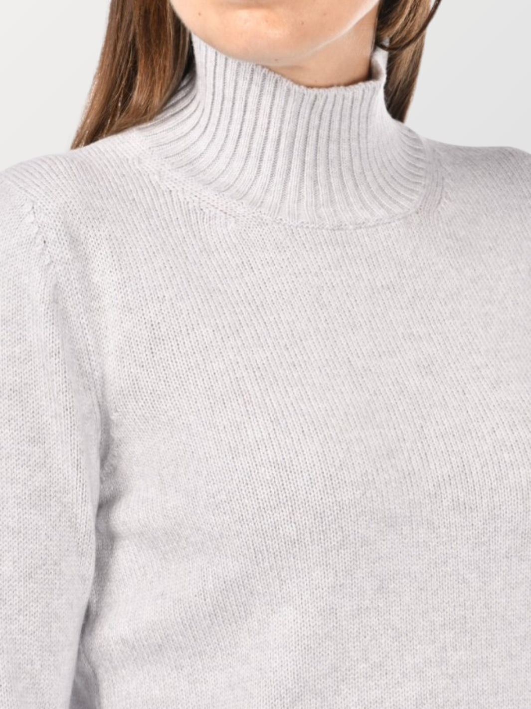 Mock Neck Sweater fra Gran Sasso. En grå genser med høy hals og ribbestrikkede detaljer. Laget i myk og behagelig kashmir.