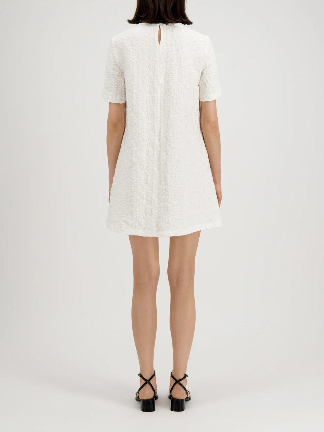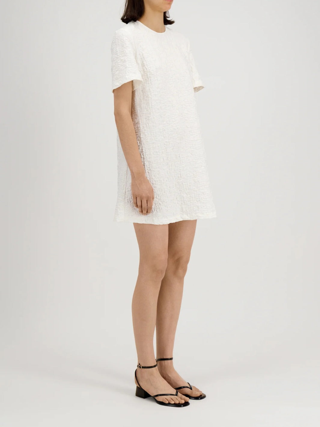 Bell Short Sleeves Dress fra Harris Wharf. En hvit kort kjole med rund hals og korte ermer. Kjolen har rik struktur.