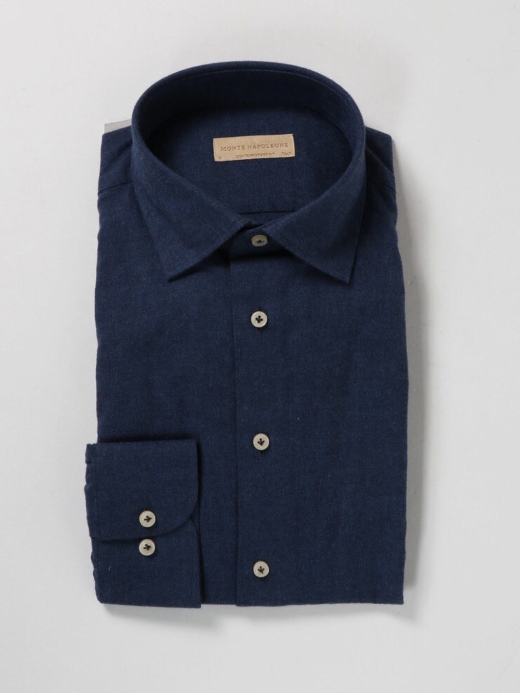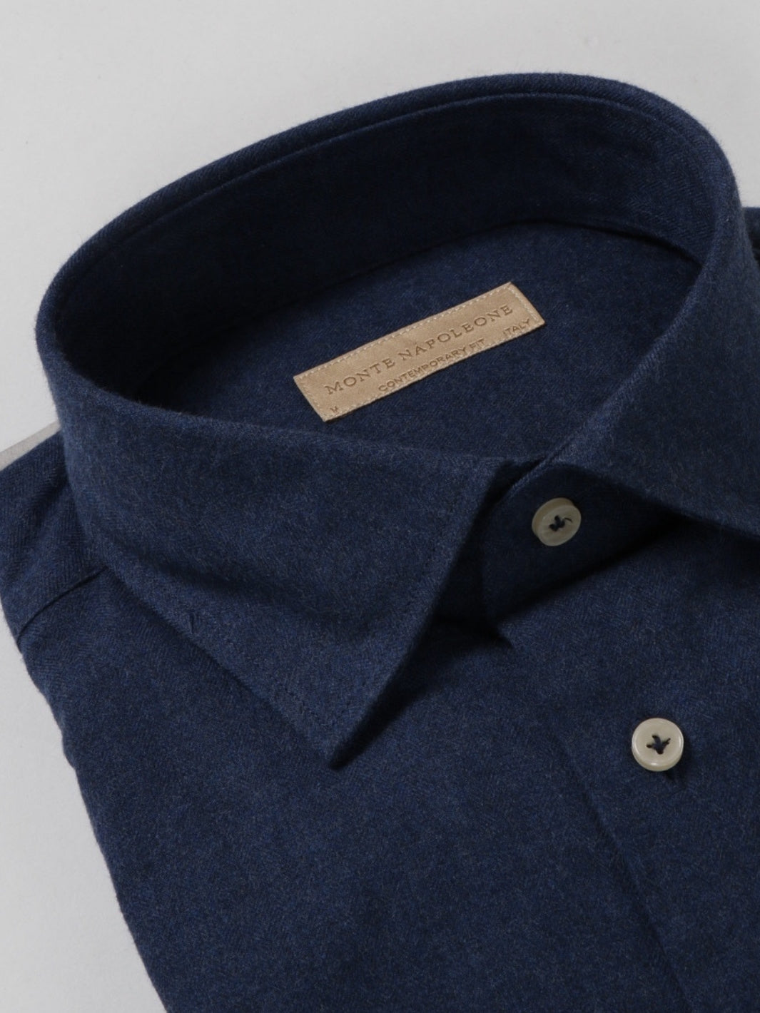Contemporary Fit Shirt fra Monte Napoleone. Mørk blå flanellskjorte med vanlig krage og enkle mansjetter.
