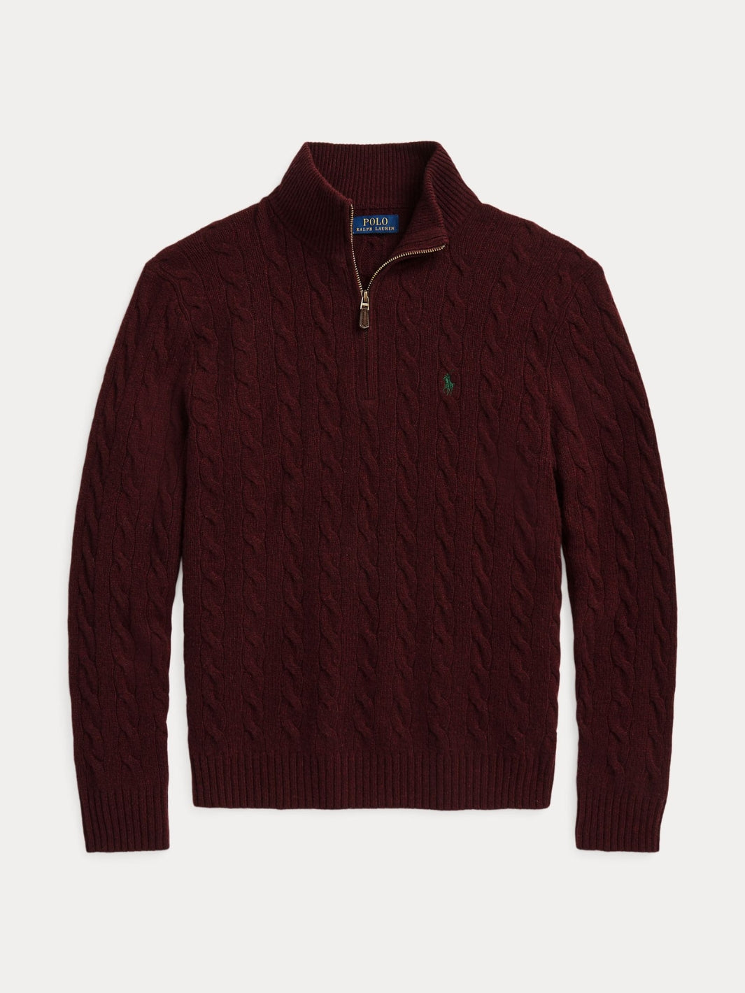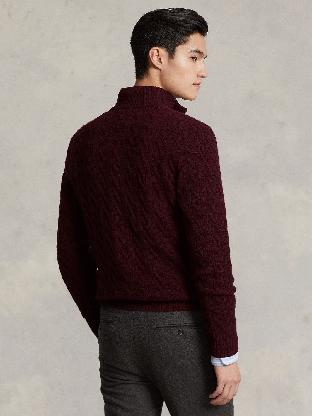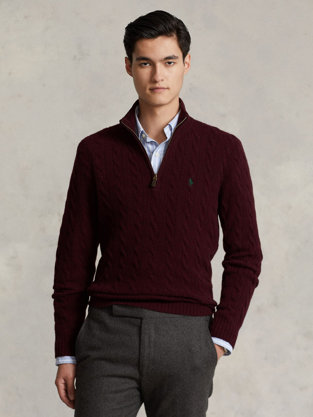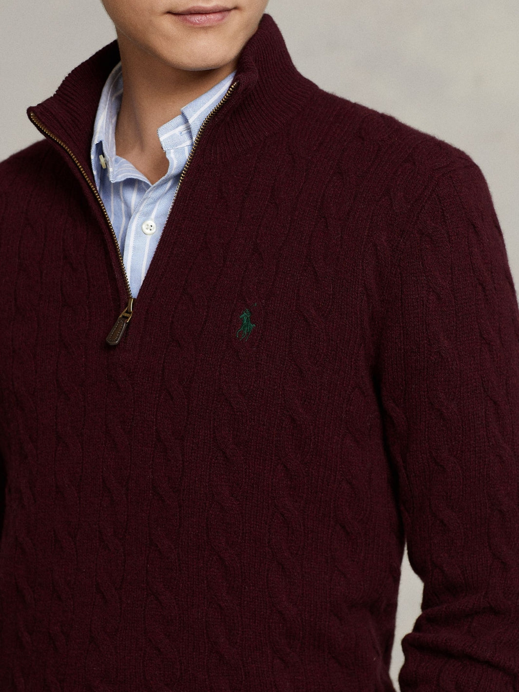Cable-Knit Wool-Cashmere Sweater fra Polo Ralph Lauren. En tidløs quarter-zip genser med kabelstrikkemønster. Genseren er laget av italiensk ull spunnet med luksuriøs kasjmir.