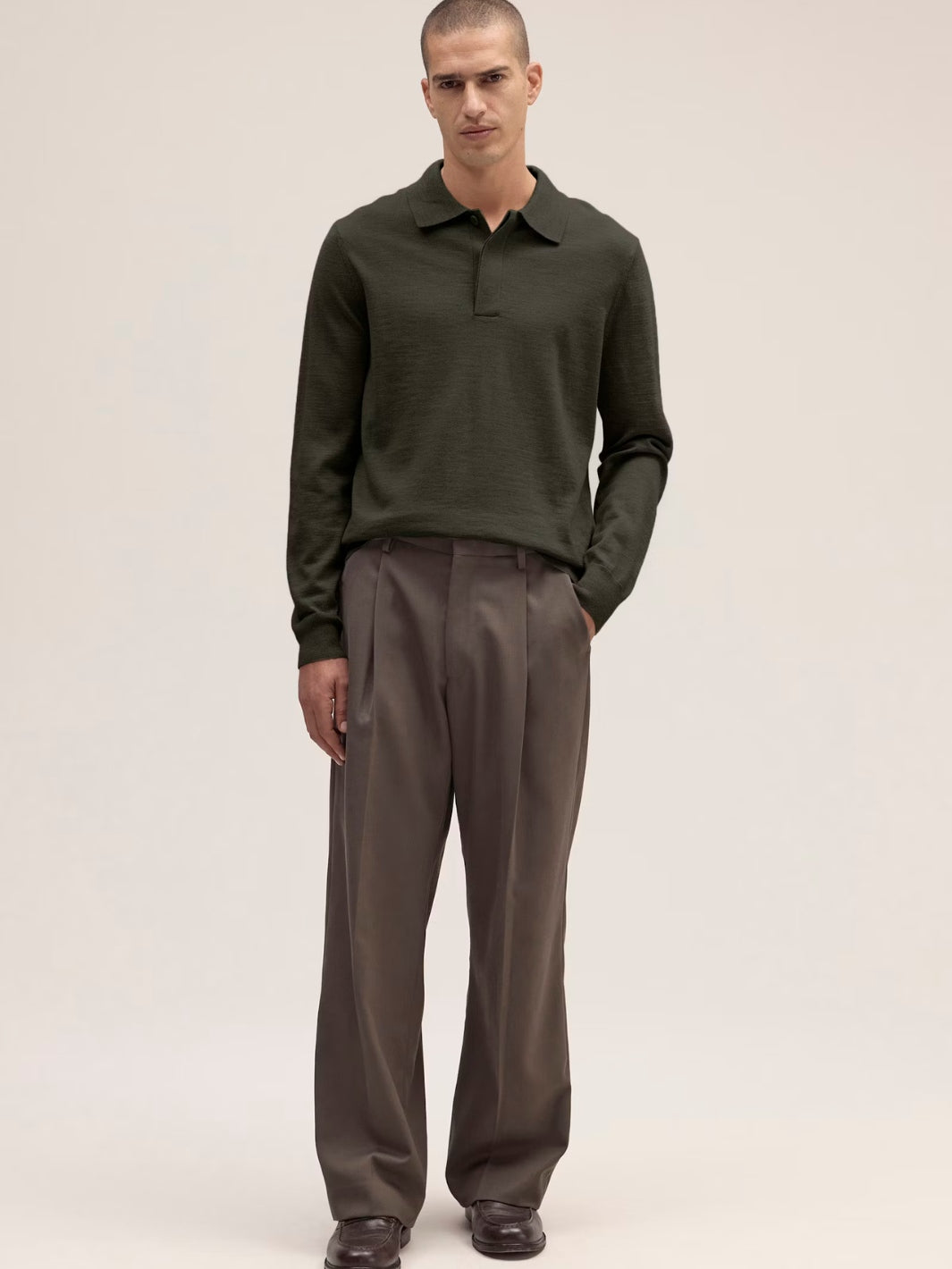 Emerson Sweater fra NN07. En grønn genser med krage, laget av 100% ull. Genseren har ribbede detaljer og skjulte knapper.