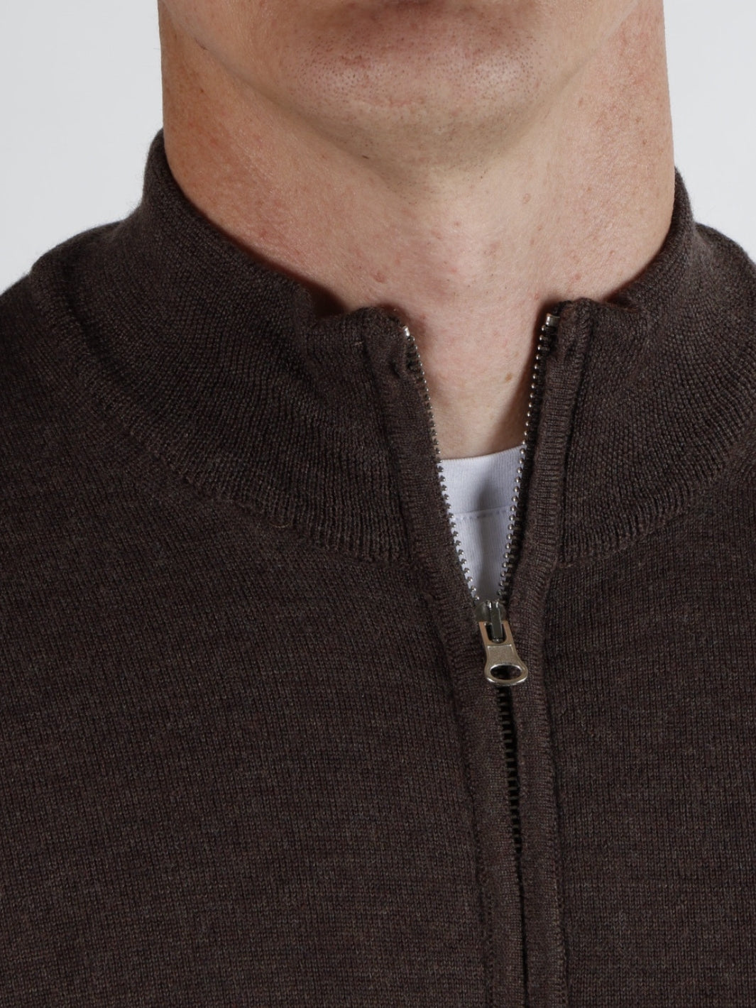 Zip Cardigan Merino fra Re del Mare. Klassisk cardigan i myk merinoull. Cardigan har hel glidelås og er et tidløst og funksjonelt plagg som passer både til hverdags og mer pyntede anledninger.
