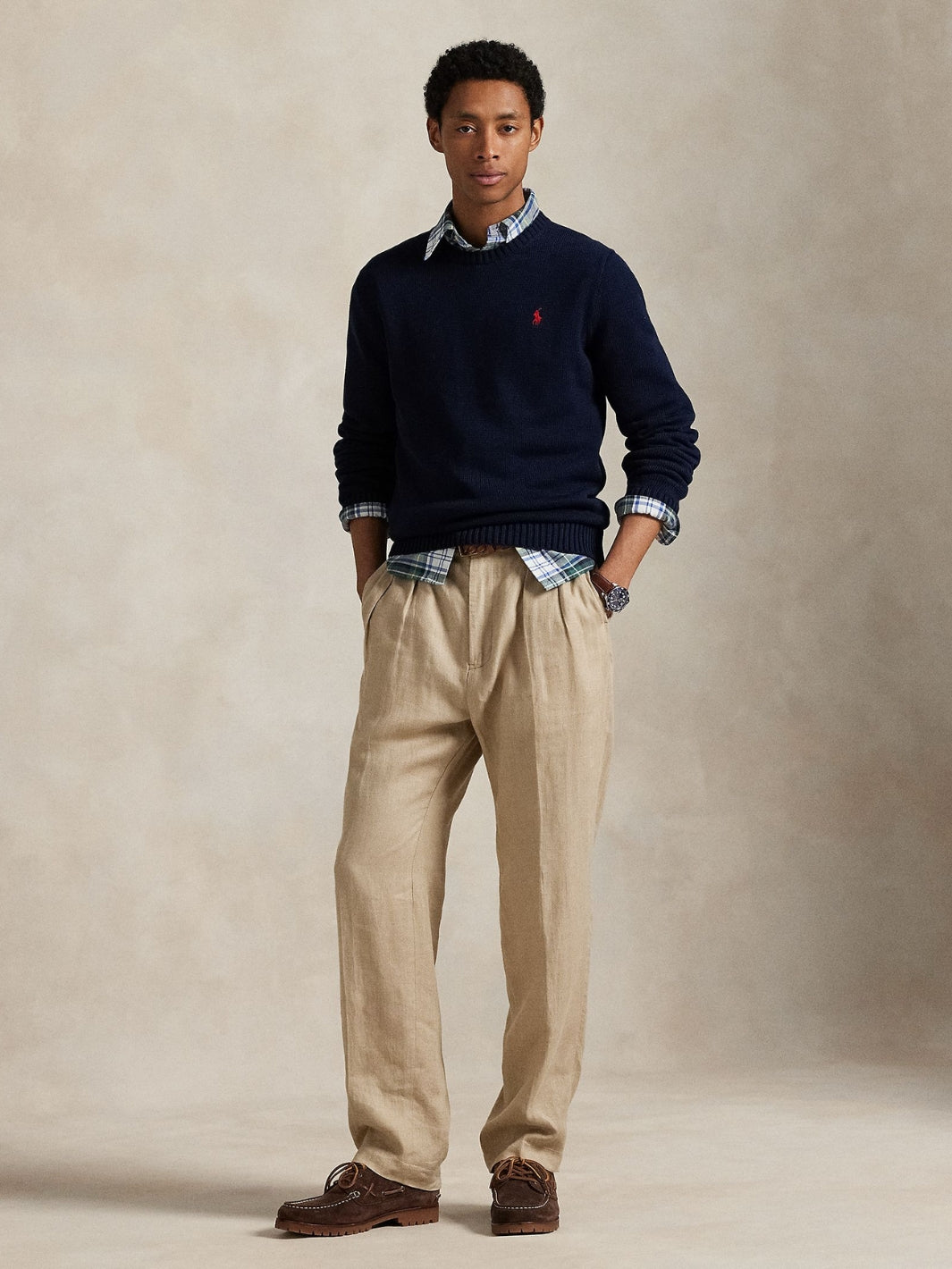 Cotton Crewneck Sweater fra Polo Ralph Lauren. En tidløs marineblå genser med rund hals. Laget i myk og pustende bomull.