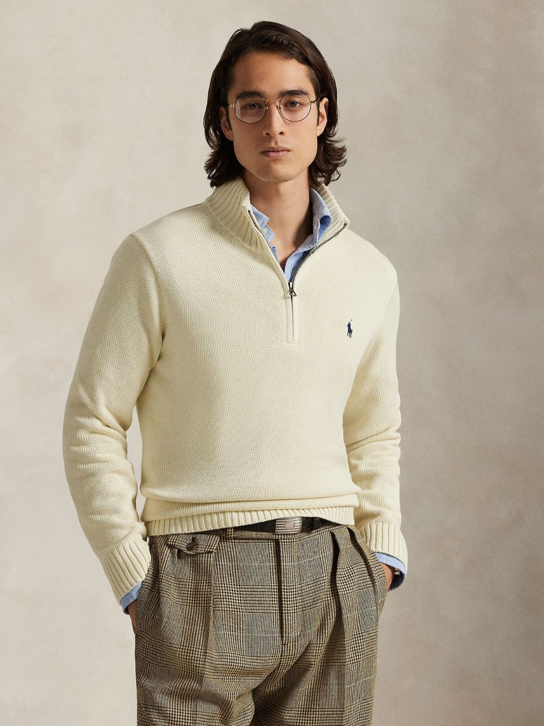 • Polo Ralph Lauren Cotton Quarter-Zip Sweater Andover Cream