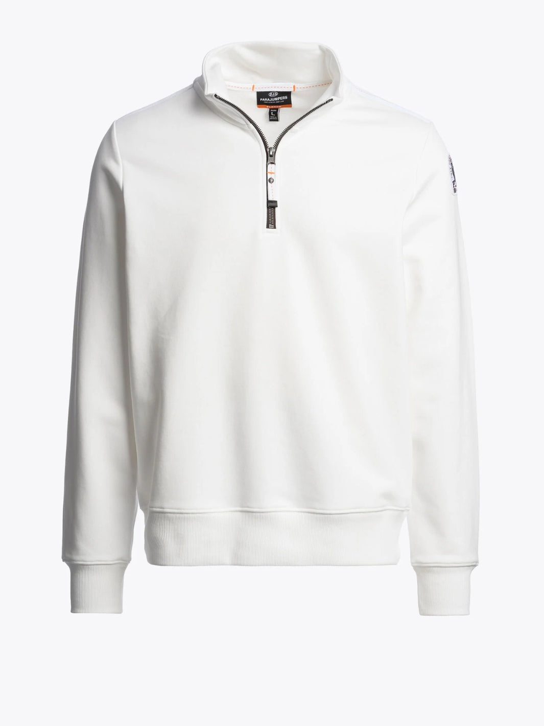 Half-Zip Fleece fra Parajumpers. En hvit sporty half-zip genser laget i en bomullsblanding, detaljert med logo-patch på det ene ermet.