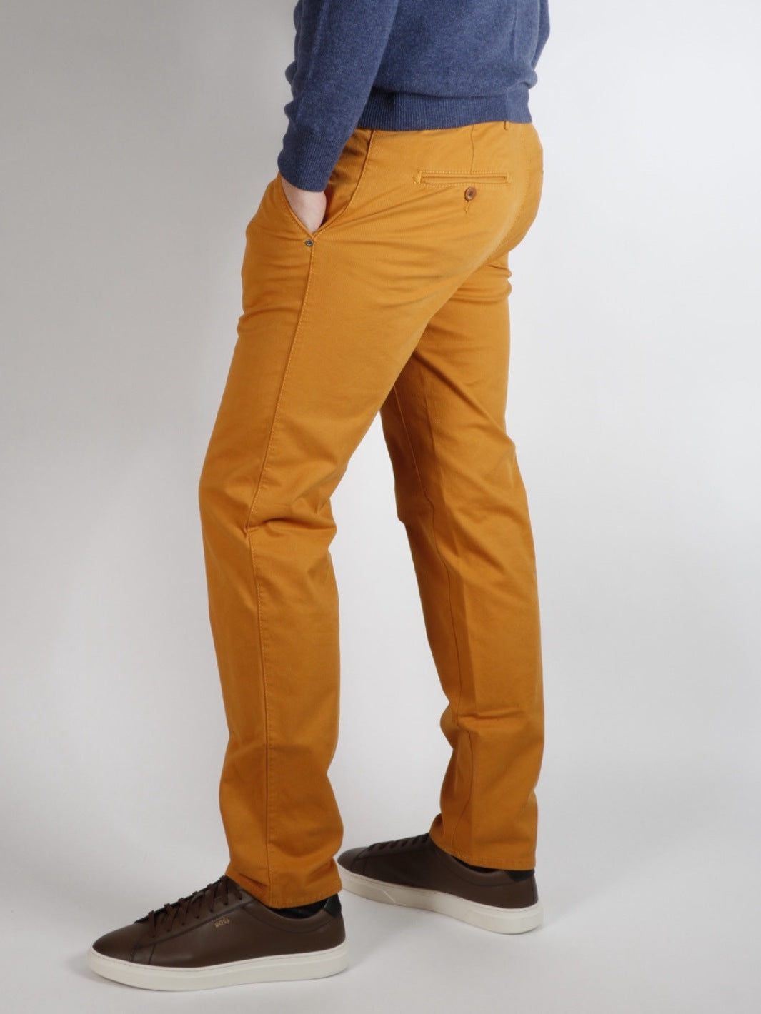 Fabio Chinos fra Brax. Klassiske chinos, her i oransje. Buksene er detaljert med passpolerte lommer på baksiden.