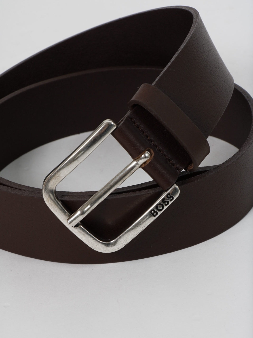 Janni Belt fra BOSS. Et brunt belte, laget av 100% lær. Beltet er detaljert med en sølvfarget spenne med inngravert BOSS-logo.