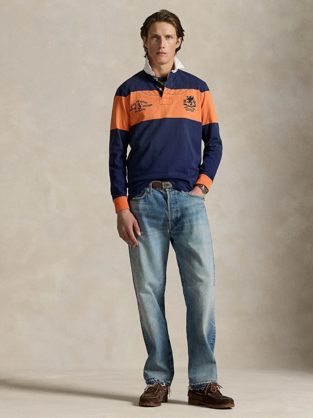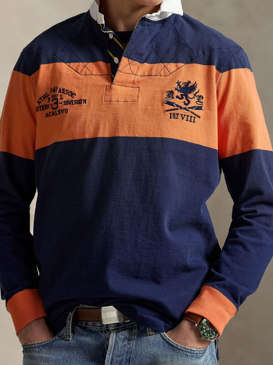- Polo Ralph Lauren Classic Fit Embroidered Rugby Shirt Newport Navy / Bedford Orange