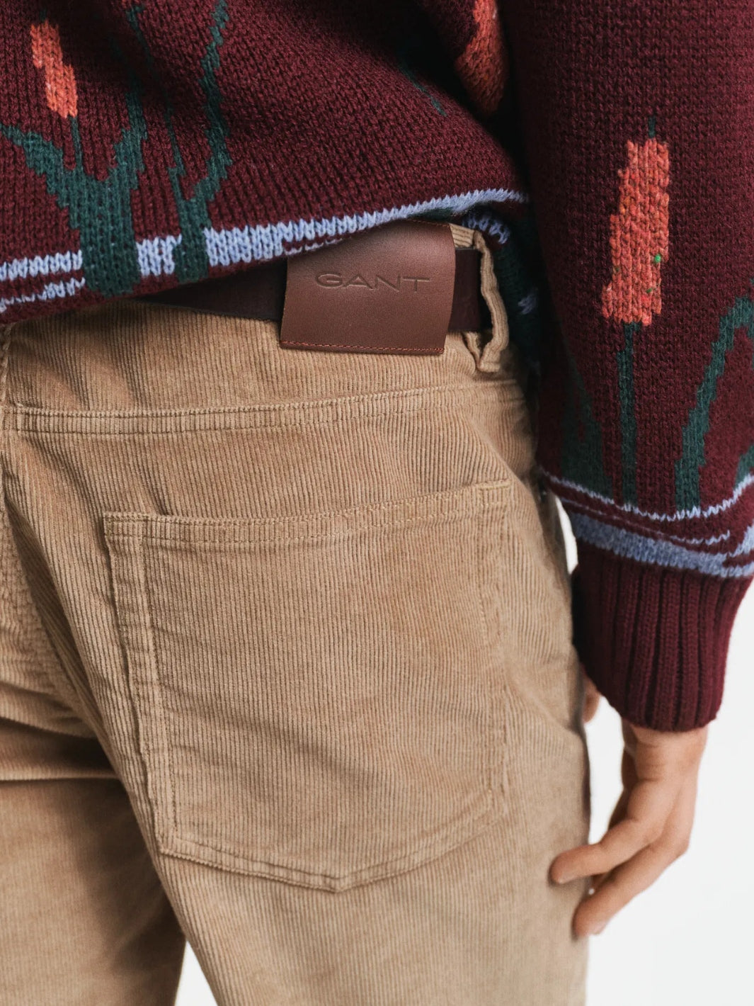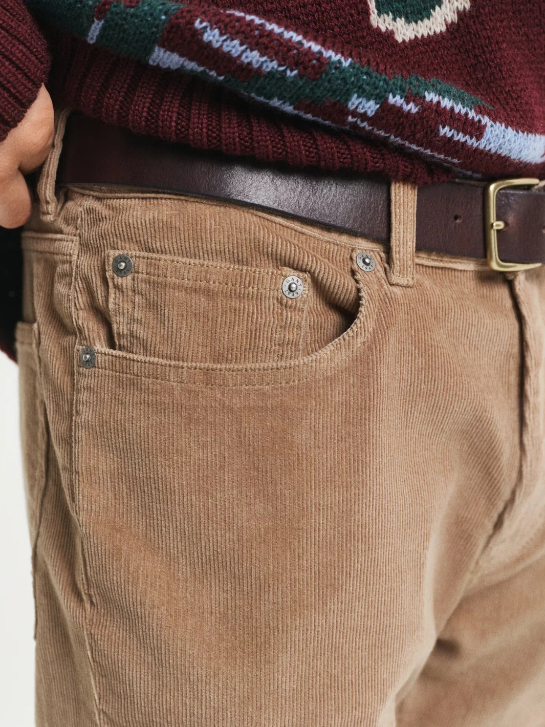 Corduroy Jeans fra GANT. Klassiske jeans i myk kordfløyel med komfortstretch, her i beige. Modellen har middels livhøyde, regulær passform og lett avsmalnede ben.