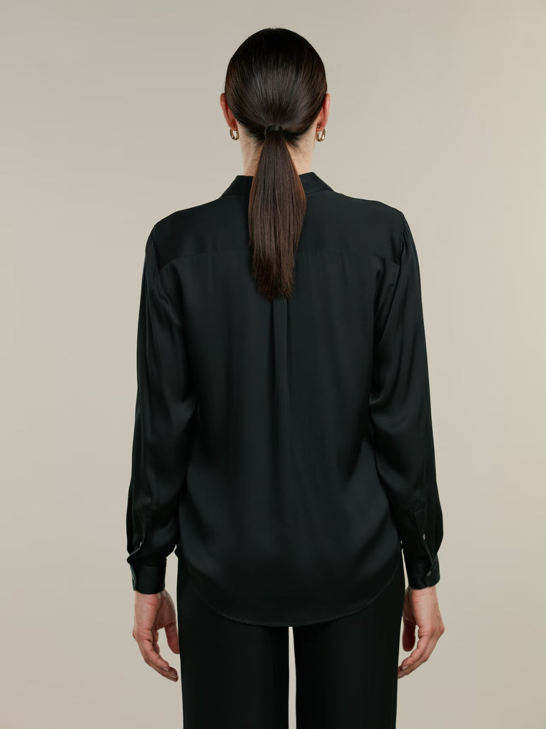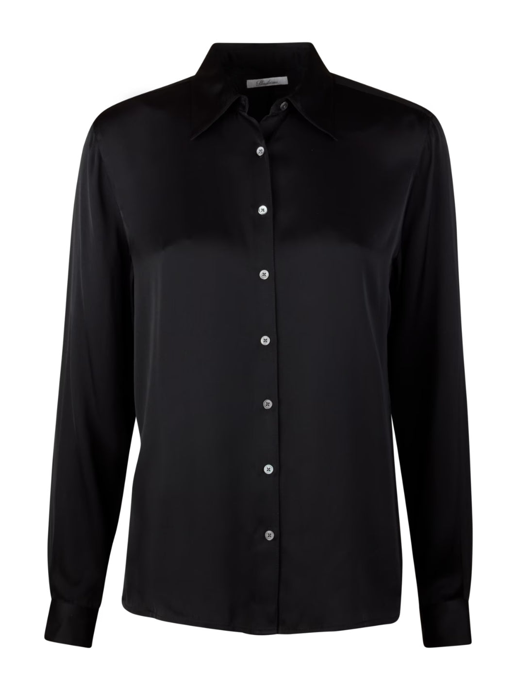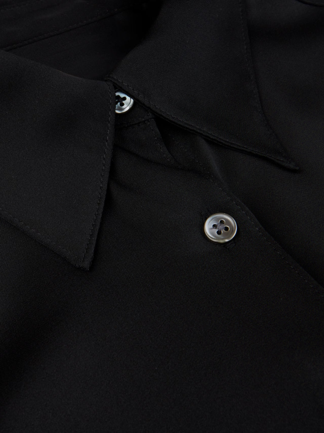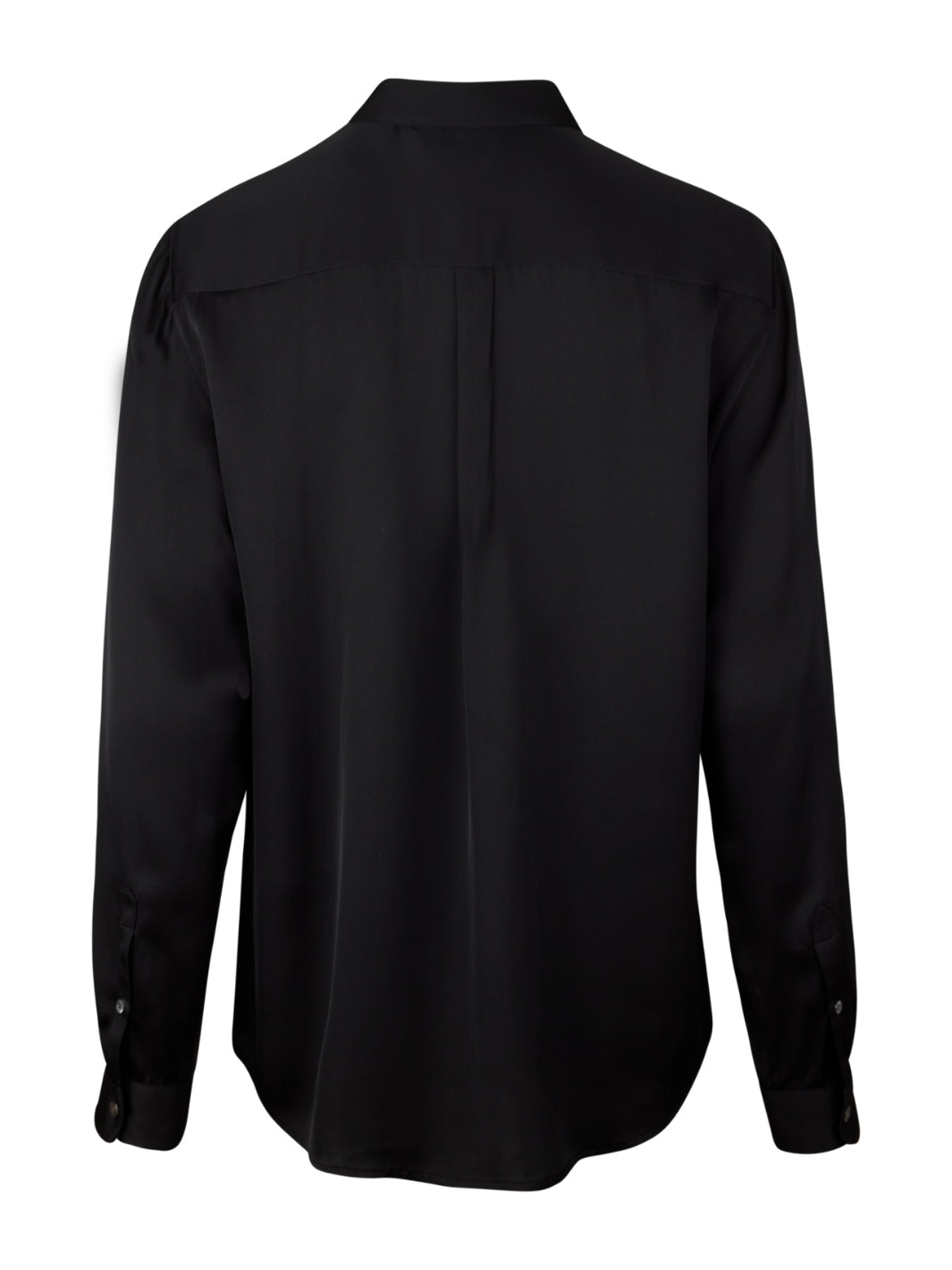 Kornelia Silk Shirt fra Stenströms. En sort silke- og viskoseskjorte med avslappet passform og klassisk krage.