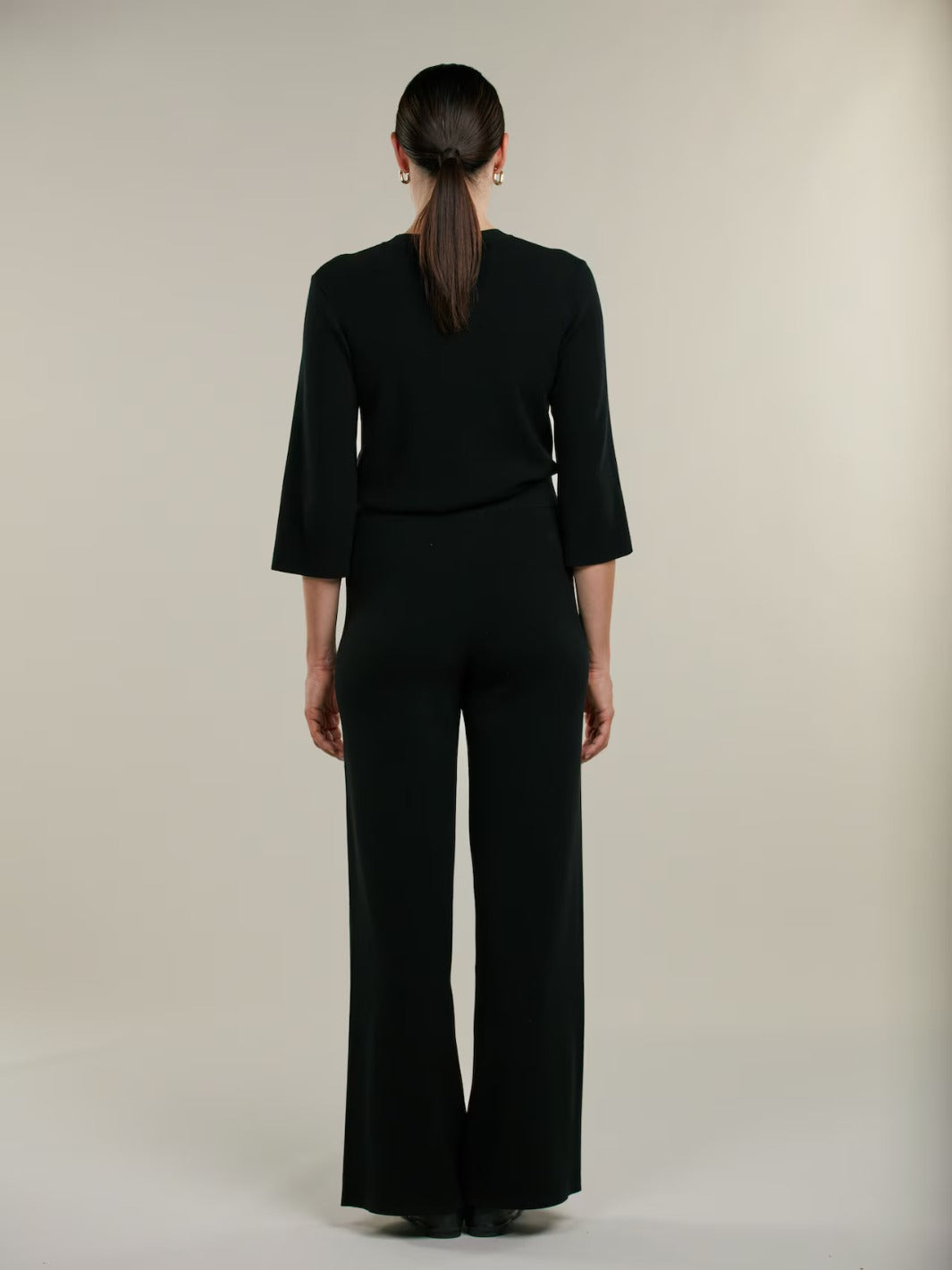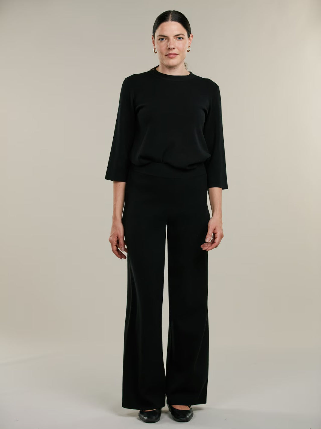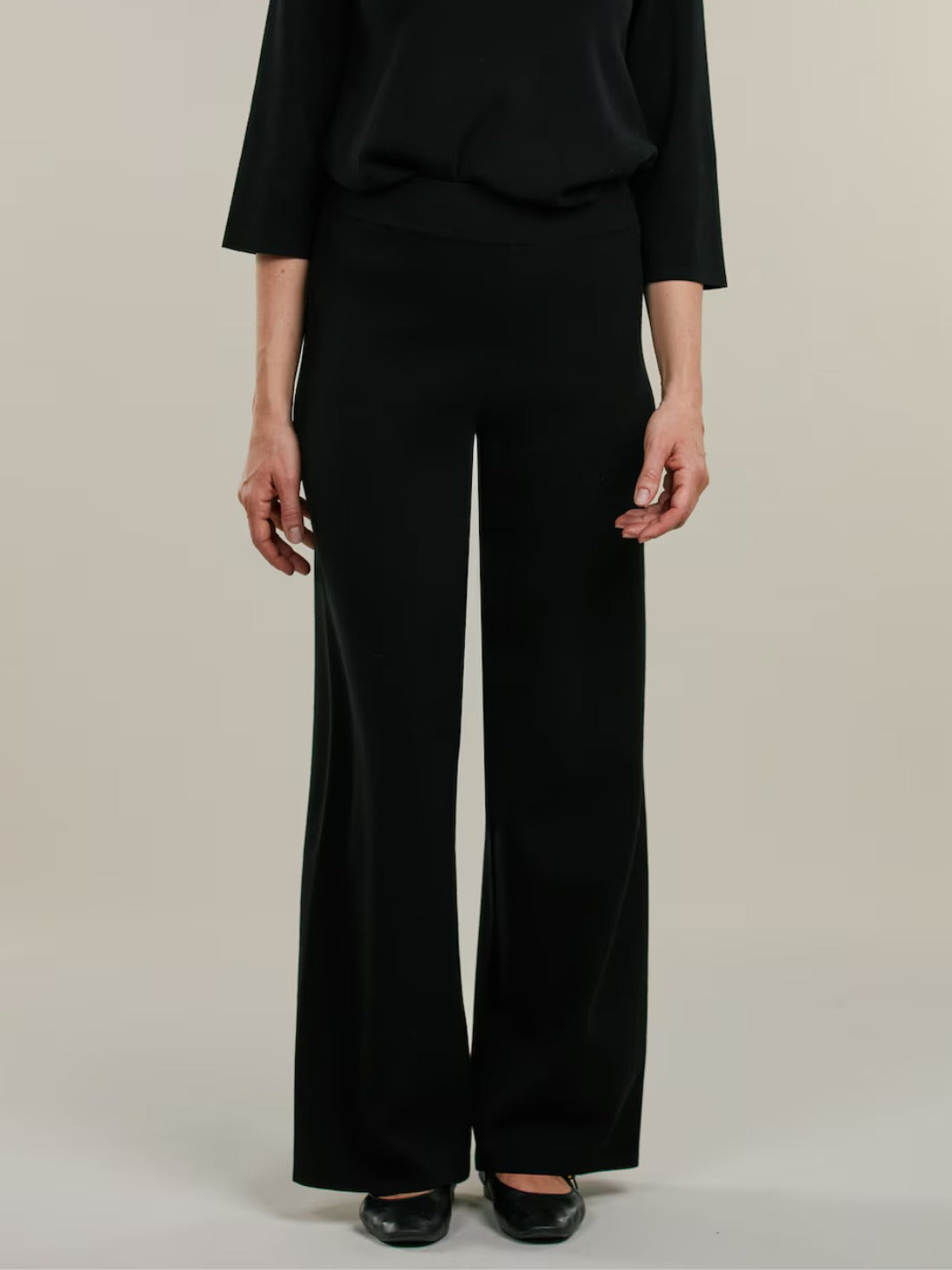 Jupiter Knitted Pants fra Stenströms. Sorte komfortable bukser bukser med vide legger og elastisk bånd i midjen.