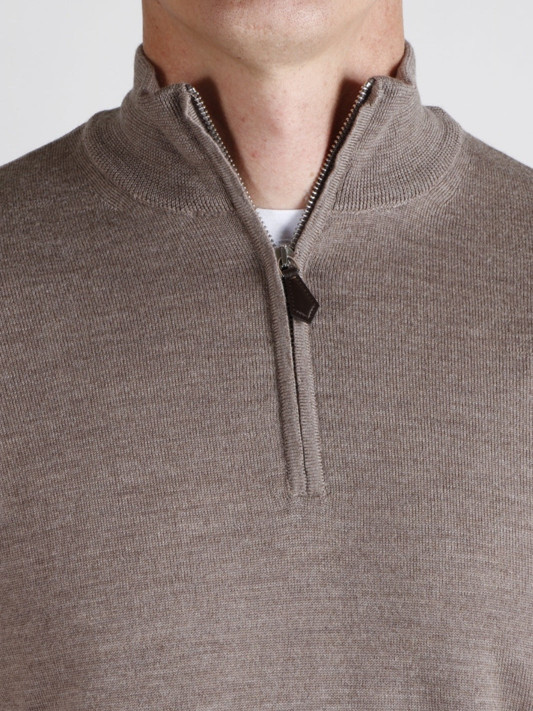 Half-Zip Merino fra RE del MARE. En klassisk beige genser med halv glidelås i halsen. Laget i myk merinoull.