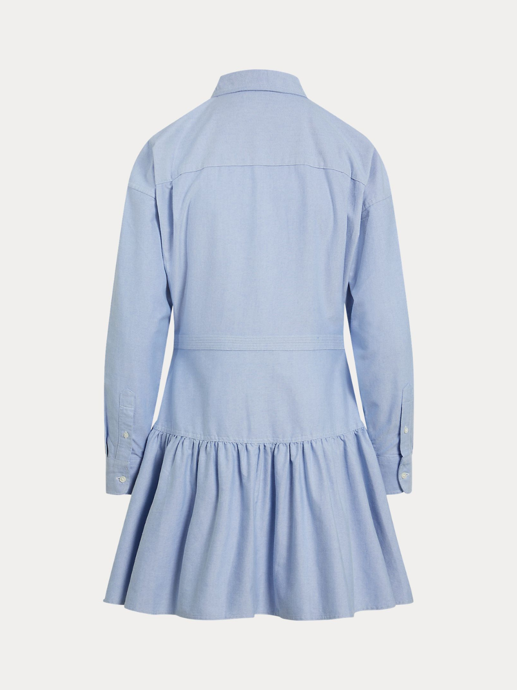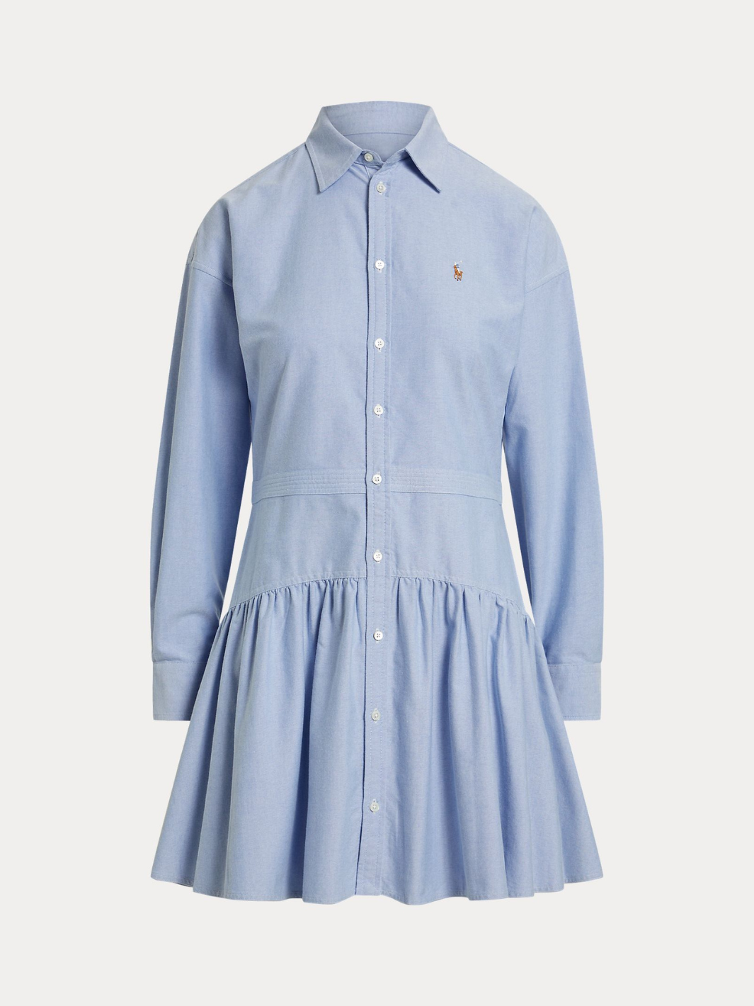 Cotton Oxford Paneled Shirtdress fra Polo Ralph Lauren. En klassisk skjortekjole med en a-formet silhuett, her i lys blå.