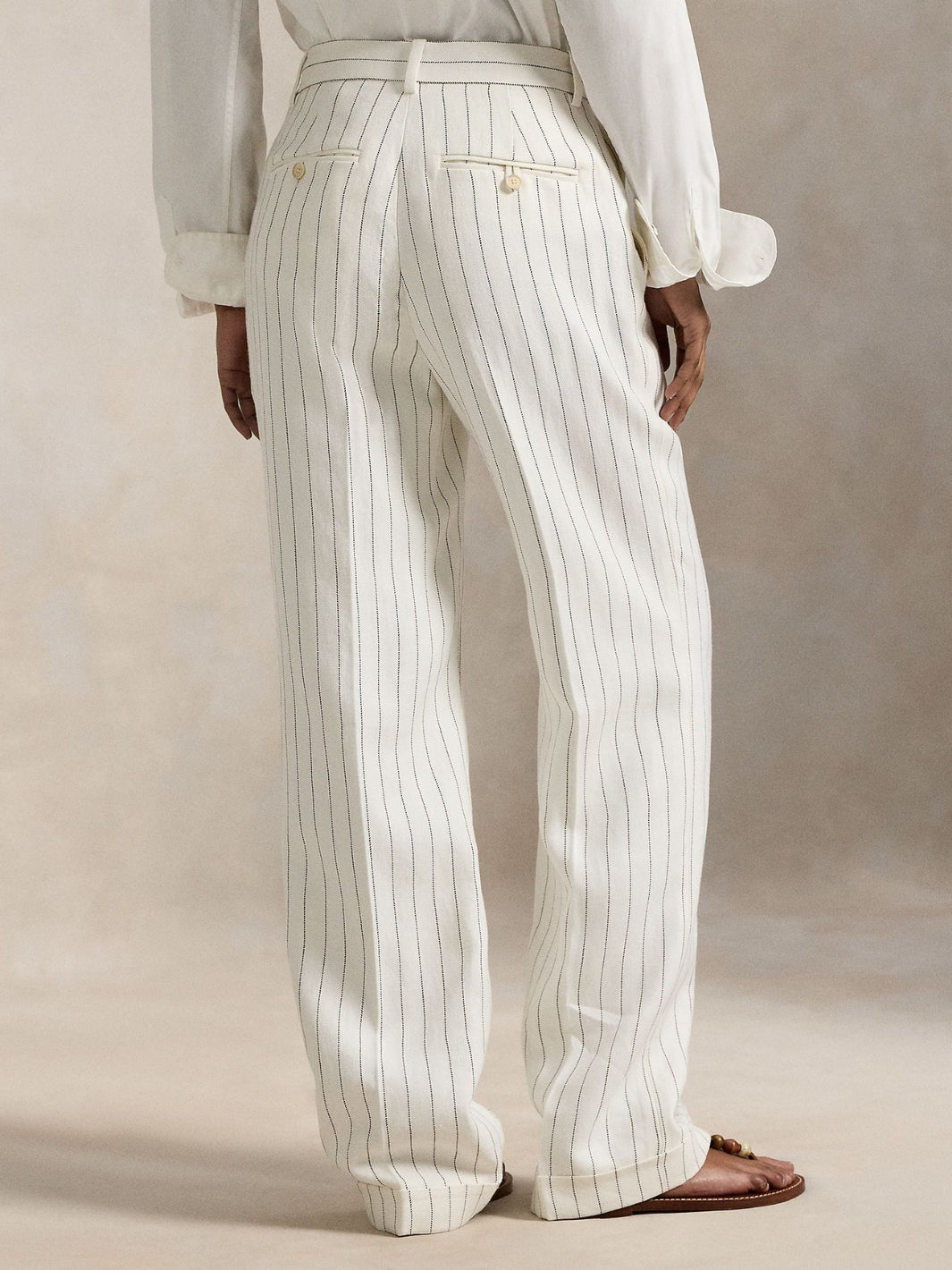 Hemp Relaxed Straight Pant fra Polo Ralph Lauren. Stripete bukser i en avslappet, rett silhuett. Pressfolder langs fronten og baksiden for et skarpt utrykk. Buksen har middels høyt liv og sitter smalt over hofter og lår før den faller rett ned i bena. Kombiner med Hemp Blazer fra samme merke for et komplett antrekk.