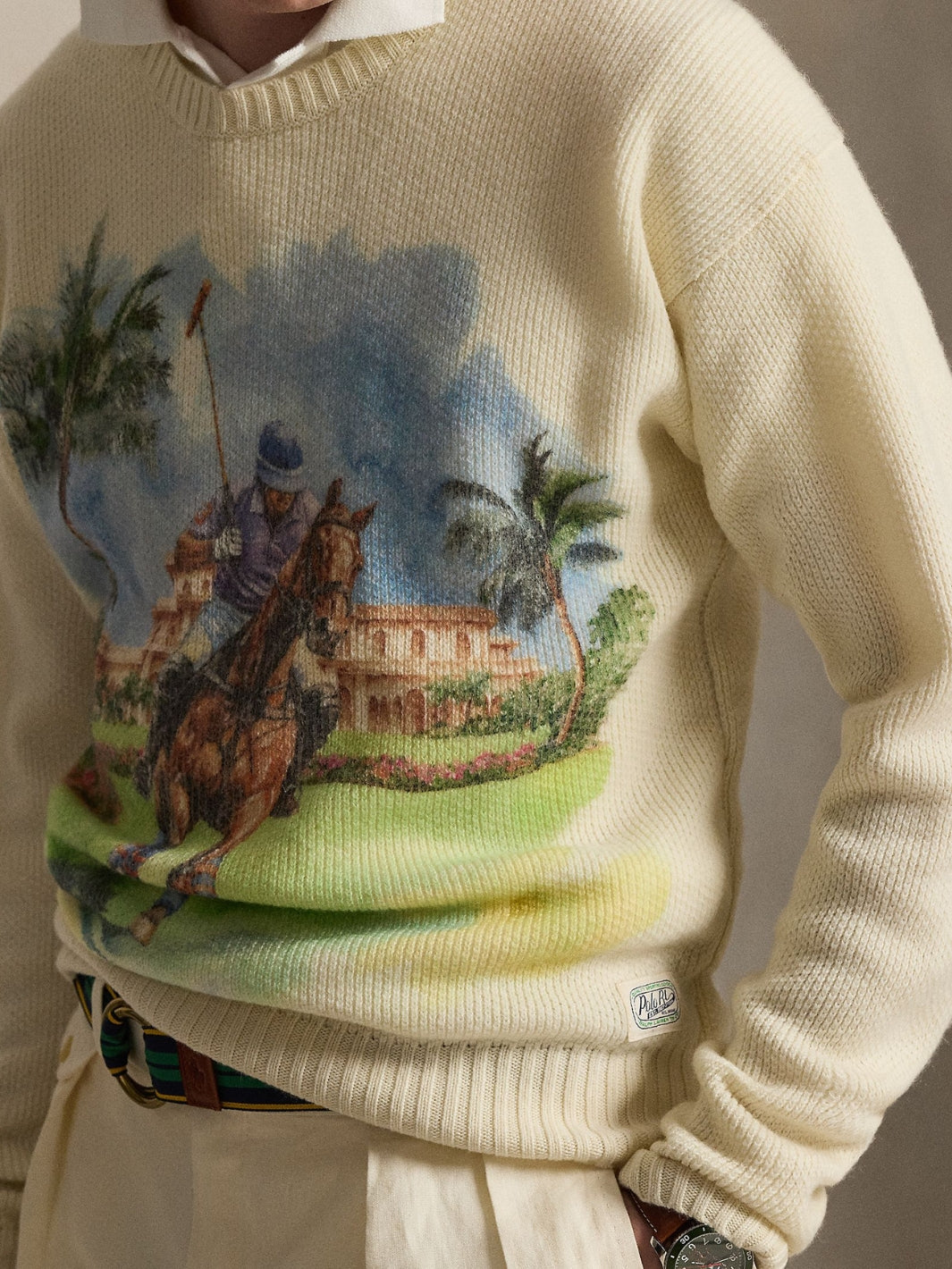 Cashmere Graphic Sweater fra Polo Ralph Lauren. En stilig kashmirgenser med motiv av sporten som som inspirerte Polo Ralph Lauren. Et trykk av en polosspiller pryder midten foran og fullfører uttrykket.