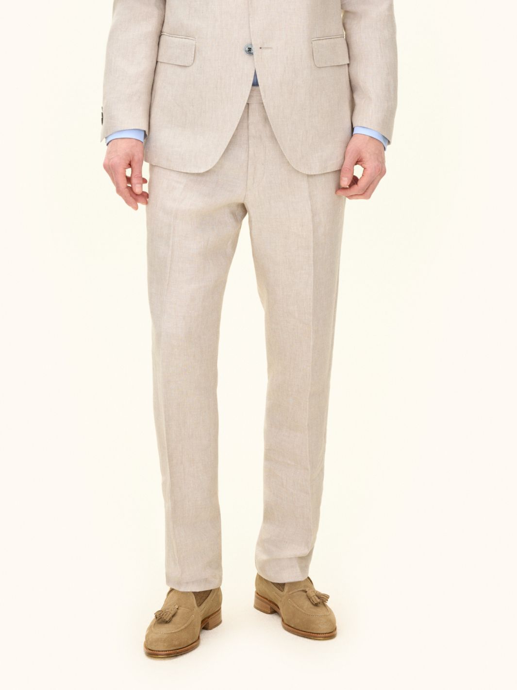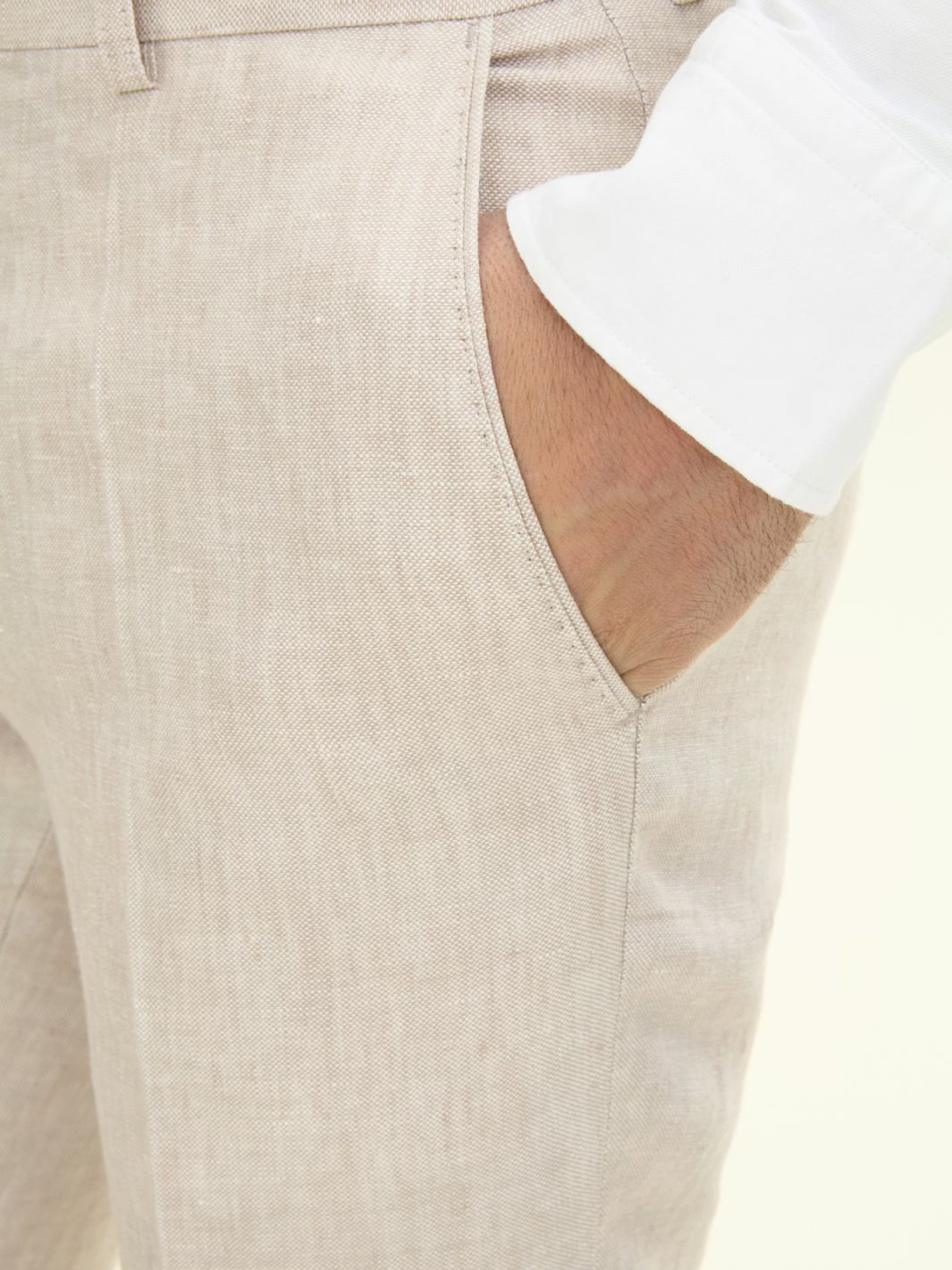Dandy Linnen Trouser fra Oscar Jacobson. En klassisk og formell linbukse i en lysere beigetone. Buksen har en regulær passform, i livet og i fotvidden. Passer sammen med Ferry Linnen Blazer fra samme merke.