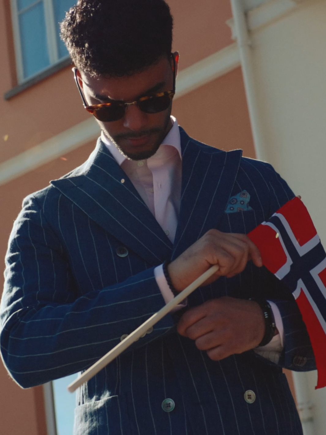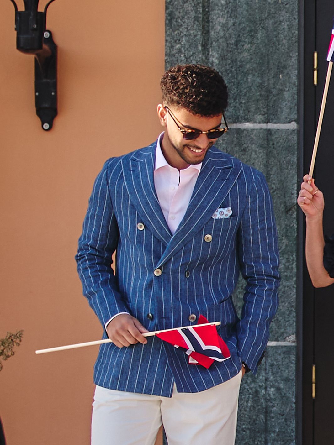 Farris Dobbeltspent Linblazer fra Oscar Jacobson. En av vårens stiligste jakker, av ren lin fra italienske Alfa-Fi . Dressjakken er helôret og har mykt konstruerte skuldre.