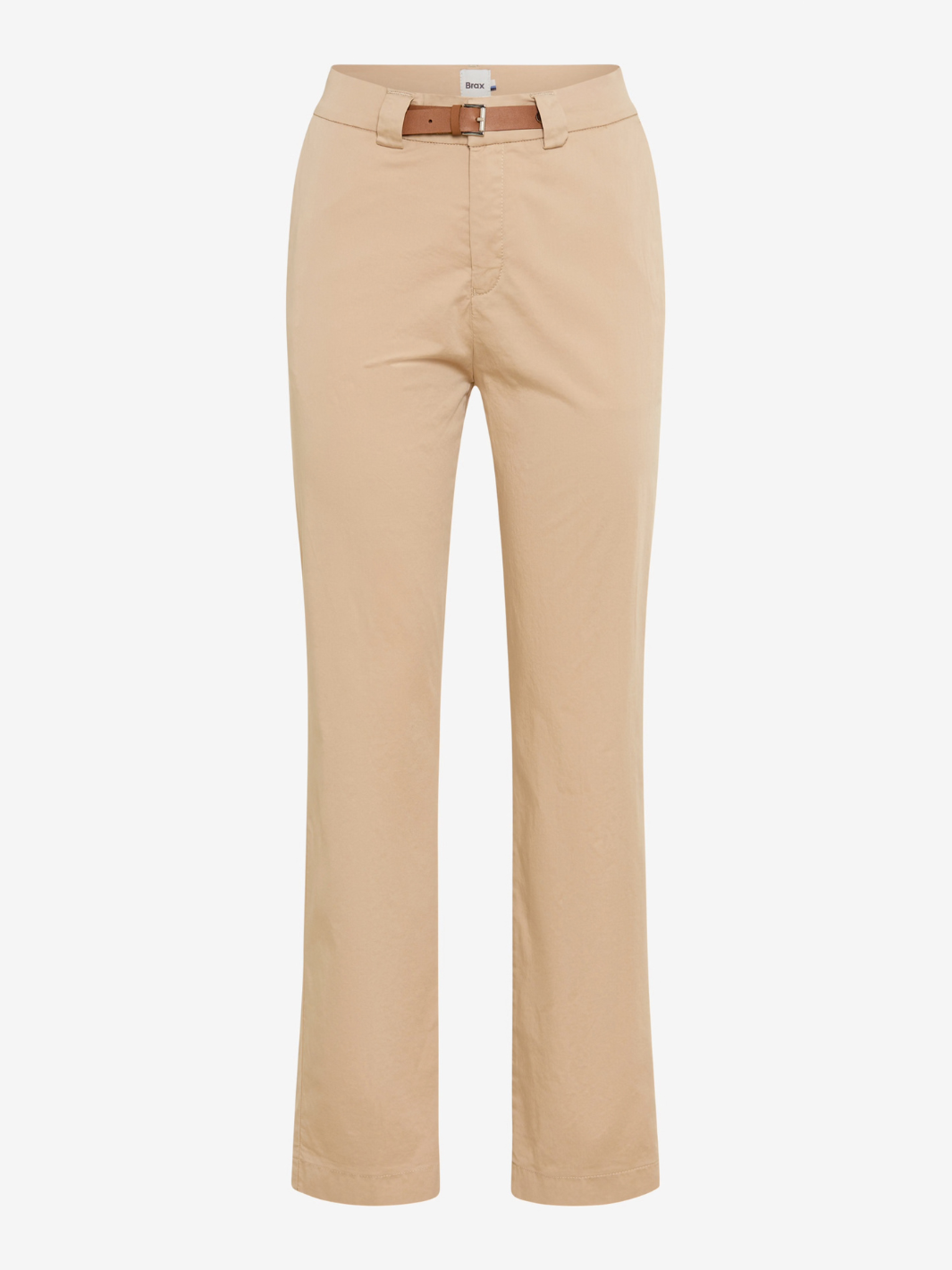 Madison Chino fra Brax. Chinos med rett passform og normal høyde på livet, her i beige. Buksene har beltedetalj i front.
