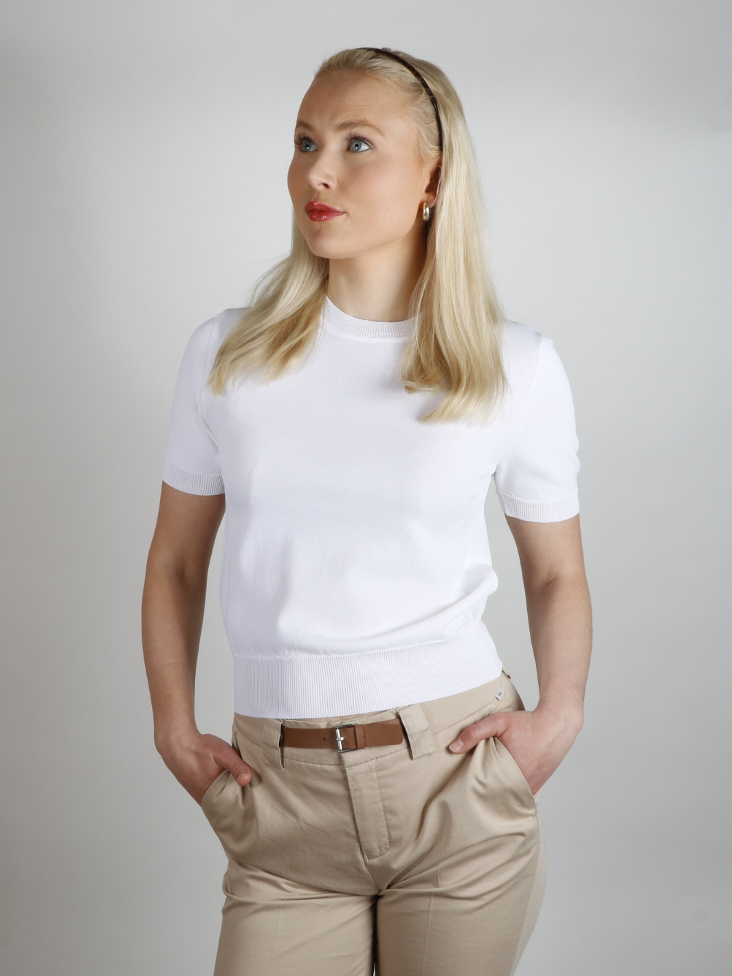 T-Shirt fra Daniele Fiesoli. En hvit genser med rund hals og korte ermer.