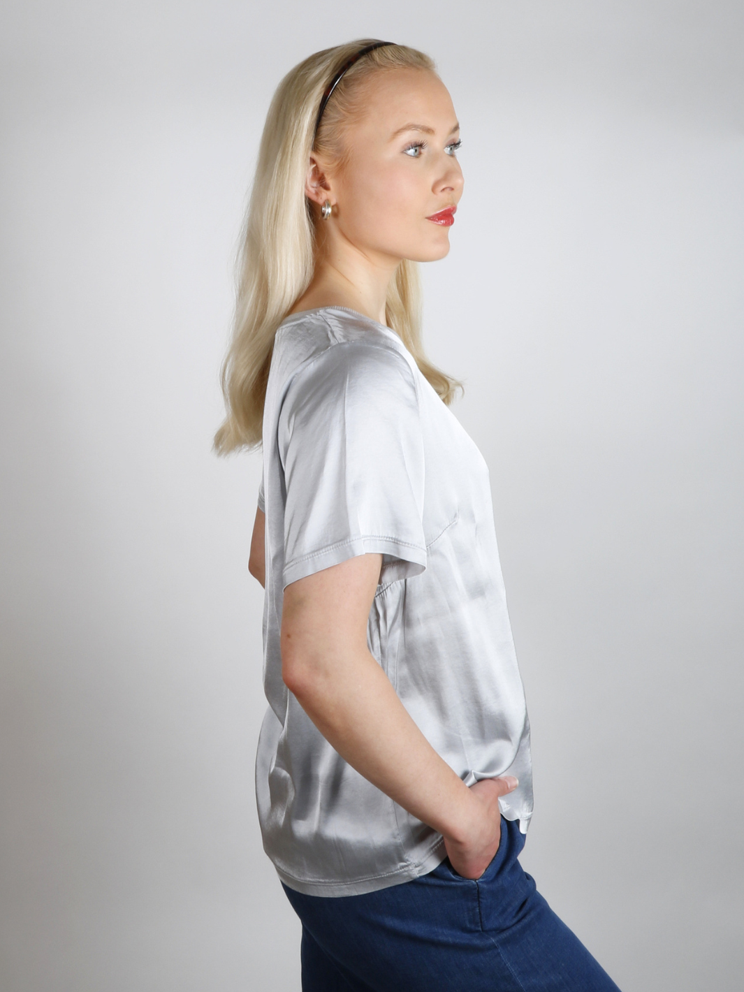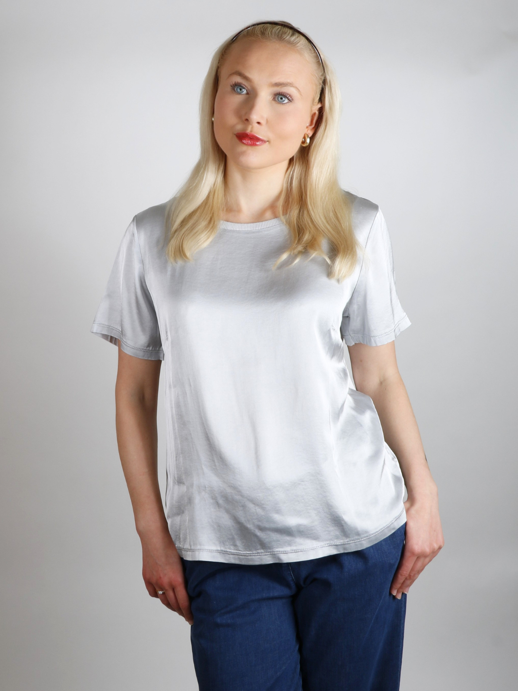 T-Shirt fra Daniele Fiesoli. En lys grå topp med rund hals, laget i sateng.
