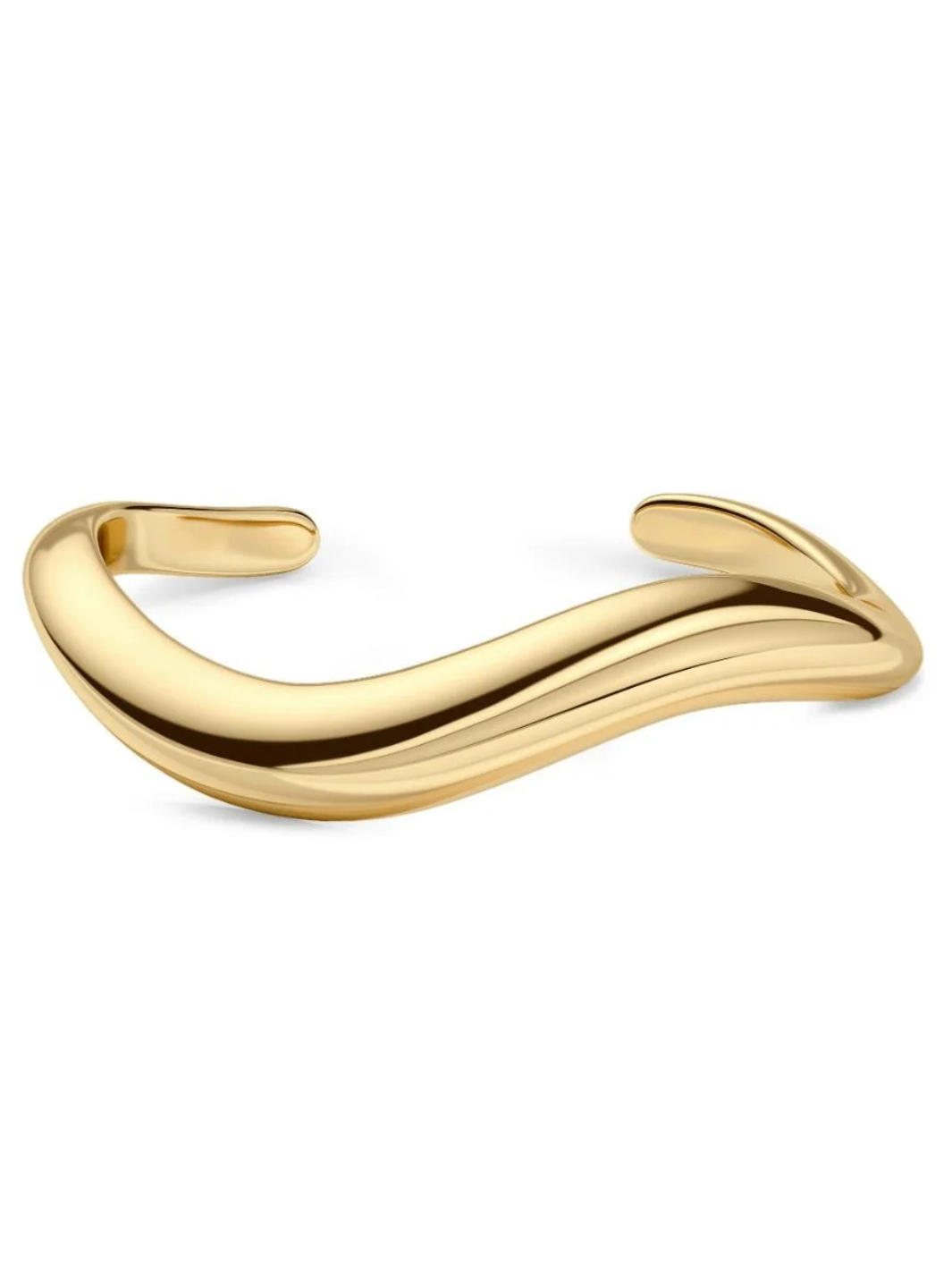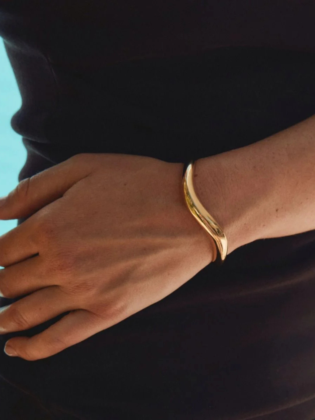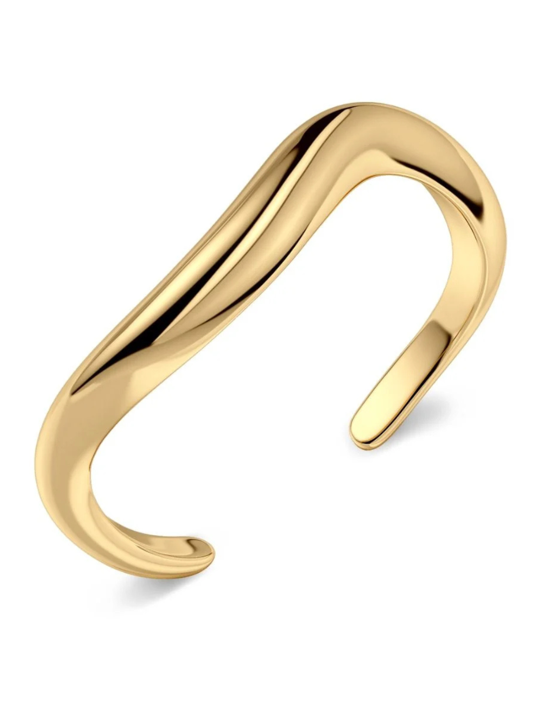 Azura Bangle fra Edblad. Et strukturert armbånd i 14K gullbelegg med en vakkert utformet silhuett. Skulpturelle og flytende former gir et tidløst og elegant uttrykk med en moderne vri.