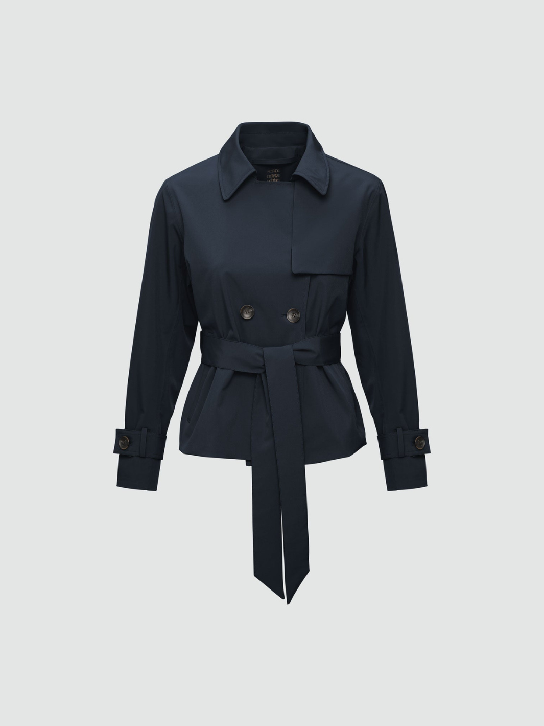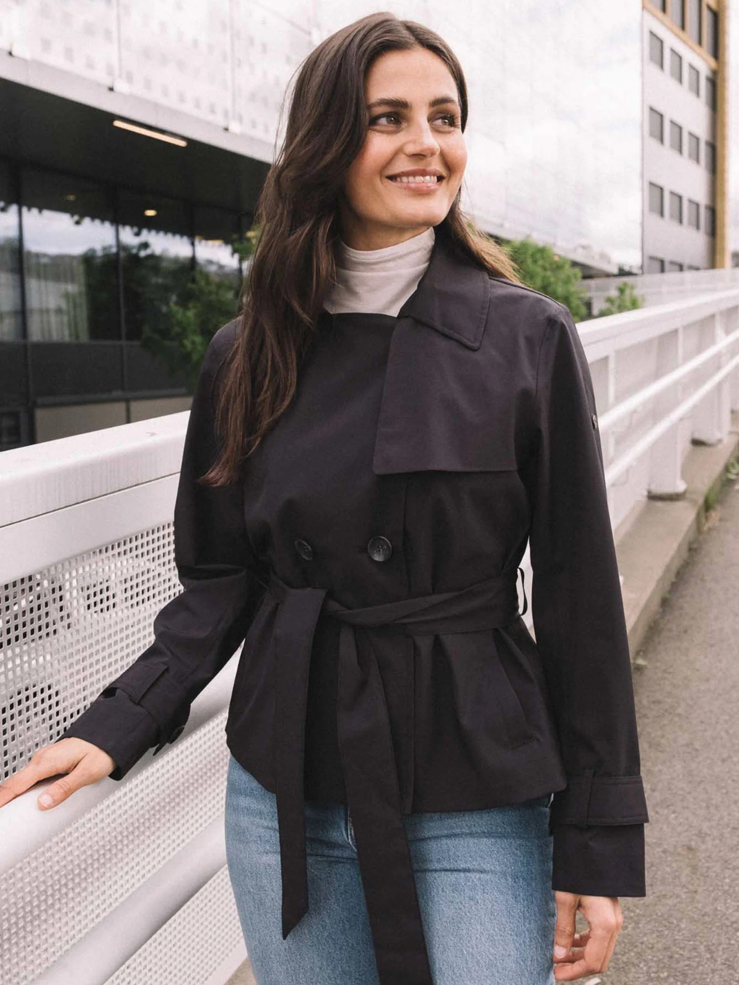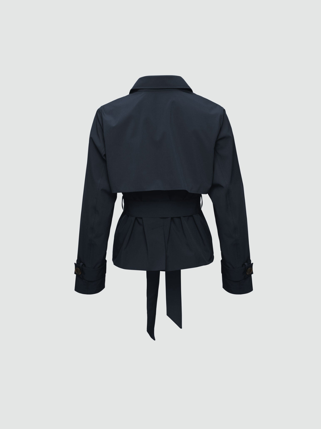 Node Trenchcoat fra Scandinavian Edition. En kort og moderne versjon av den klassiske trenchcoaten, her i marineblå. Med teipede sømmer er jakken 100% vann- og vindtett, og passer perfekt for mildt overgangsvær. Den har et midjebelte som er perfekt for personlig justering og styling.