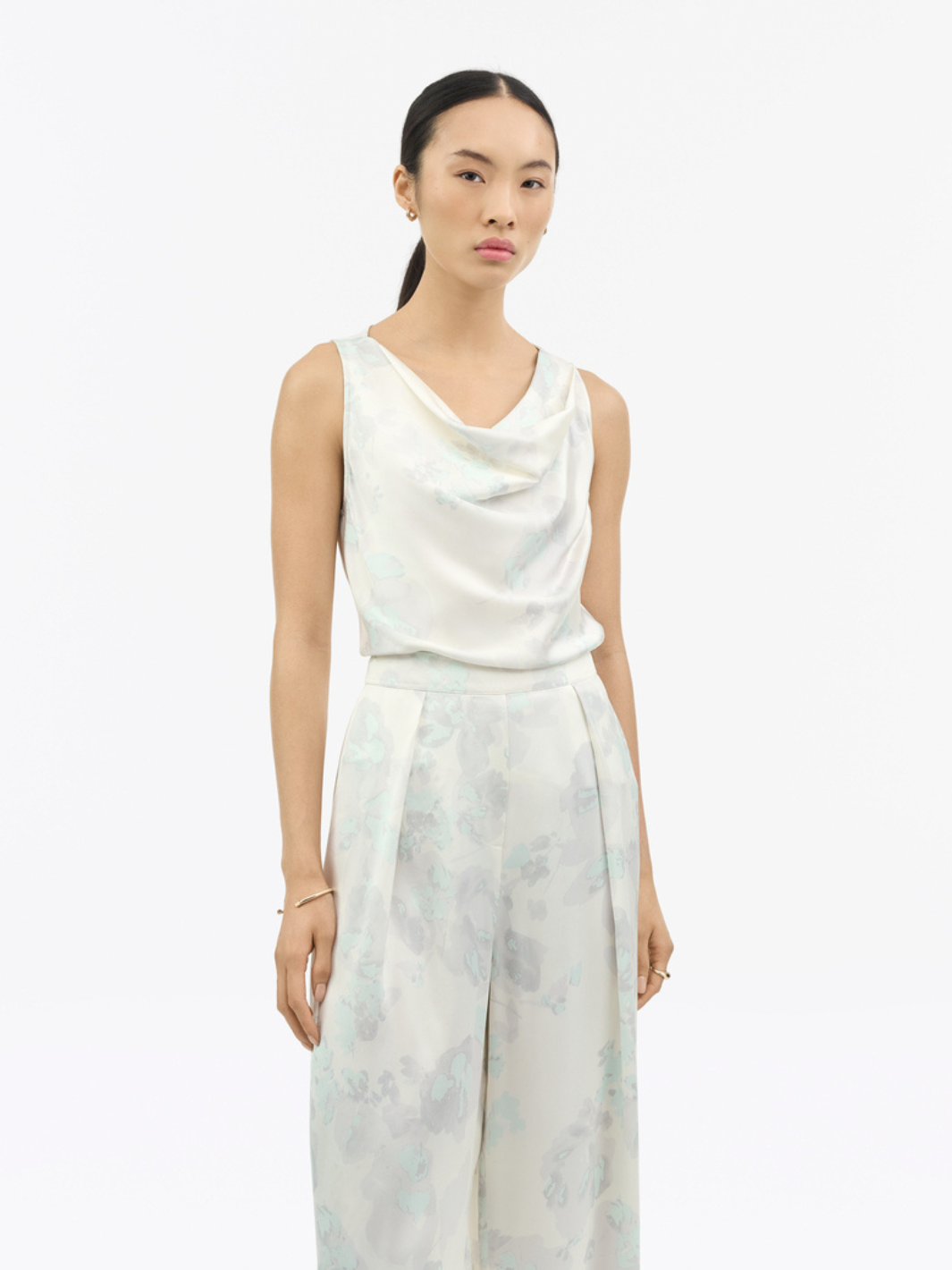 Helvie Top fra Tiger of Sweden. En lekker topp med drapert hals, her i blomsterprint. Toppen er ermeløs og ufôret.