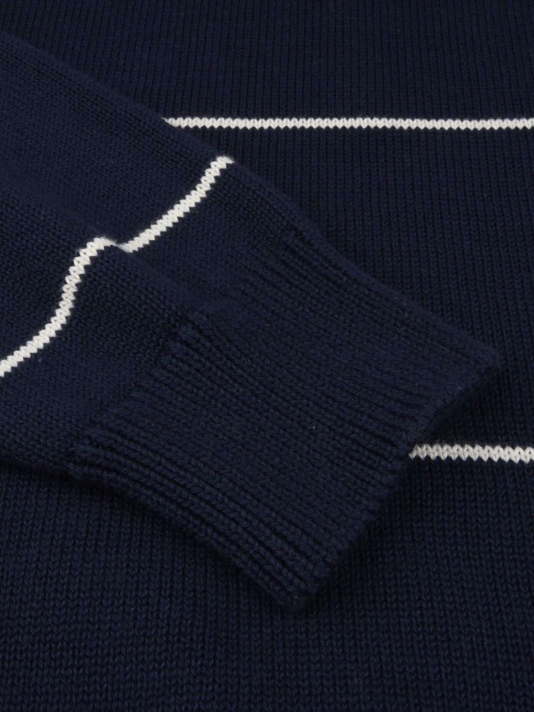 Crew Neck Sweater fra Stenströms. Stilren strikket bomullgenser, her i marine med hvite striper.