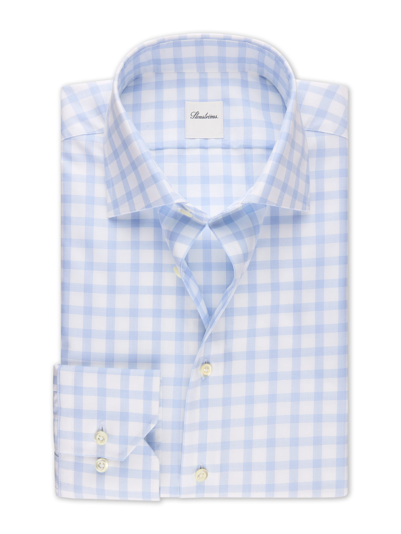 Regular Checked Twill Shirt fra Stenströms. Stilren skjorte i lys blå rutete mønster, laget for å gi deg både komfort og stil. Denne skjorten er perfekt for hverdagsbruk og kan enkelt styles med ulike antrekk.