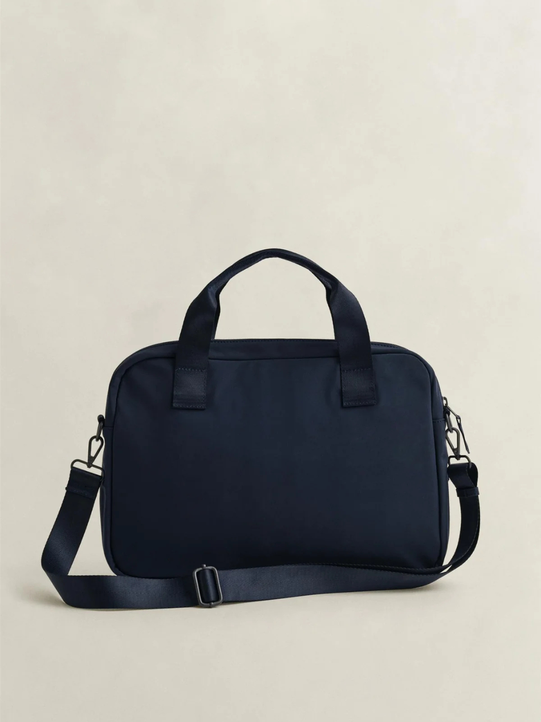 Essential Commuter Bag fra GANT. Praktisk marineblå skulderveske med polstret hovedrom, og ekstra utvendig lomme.